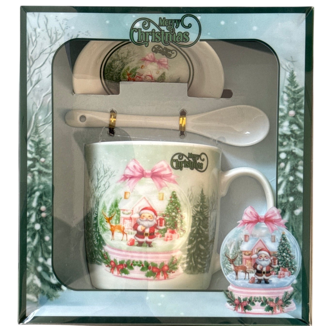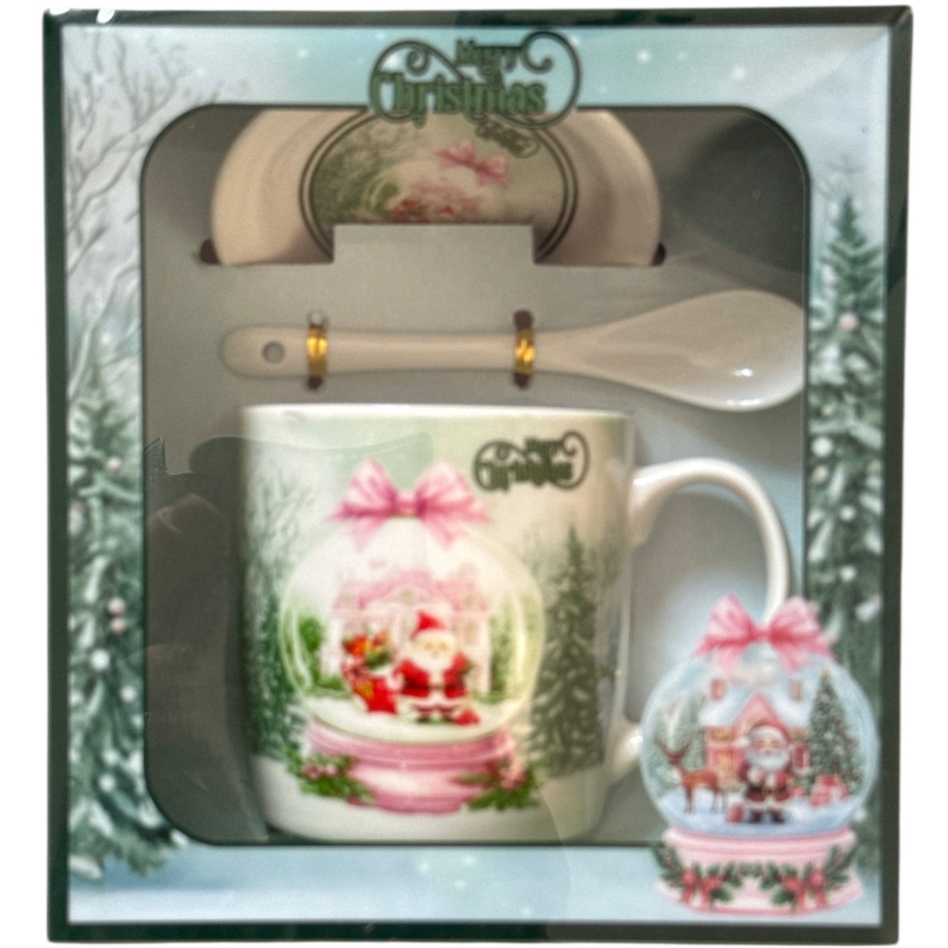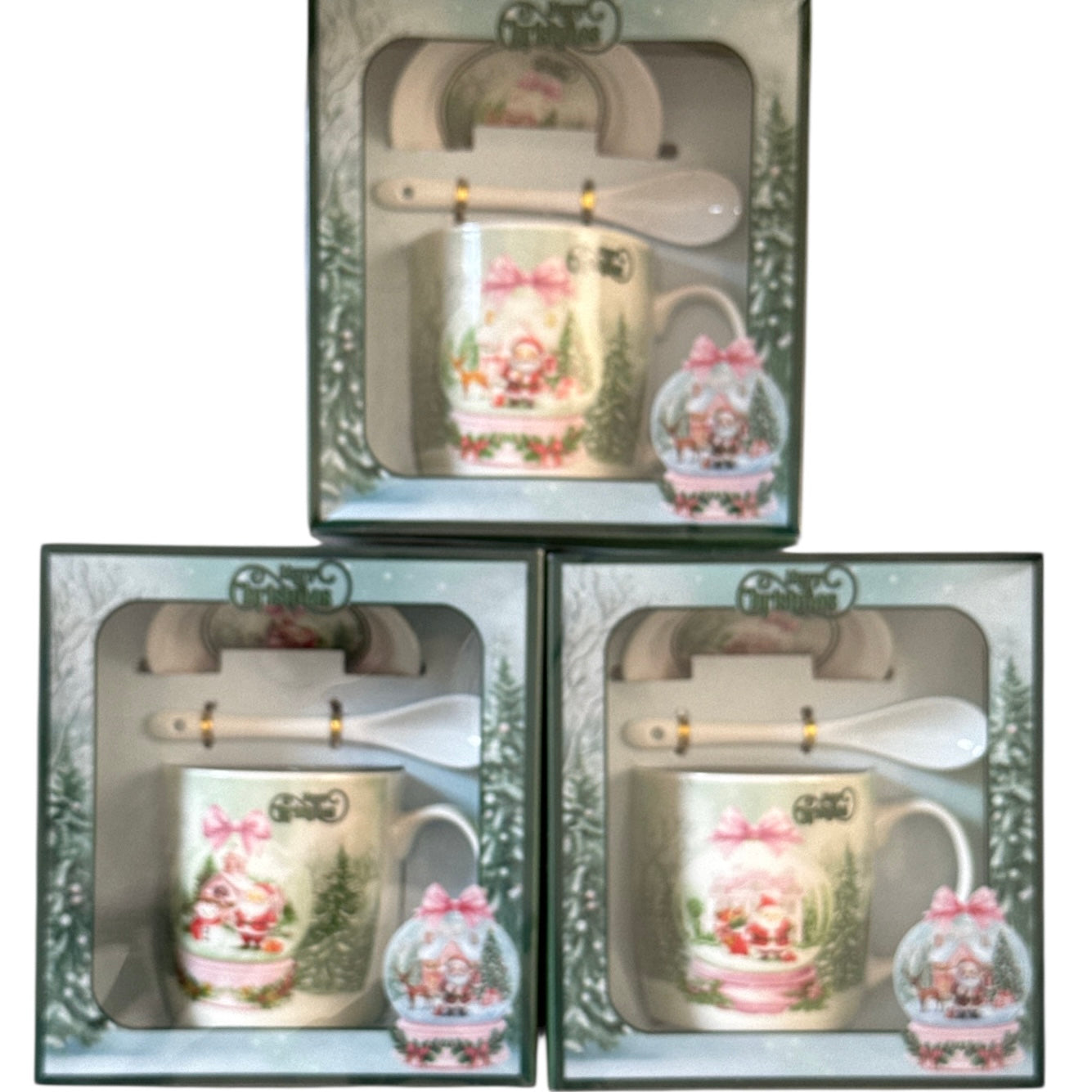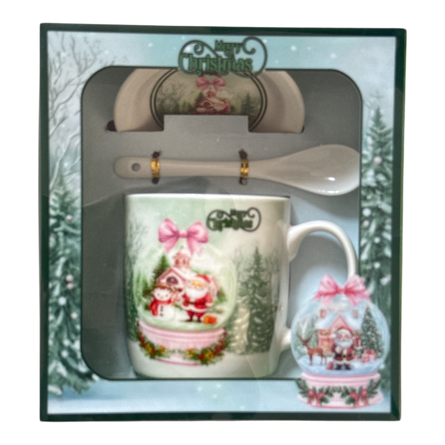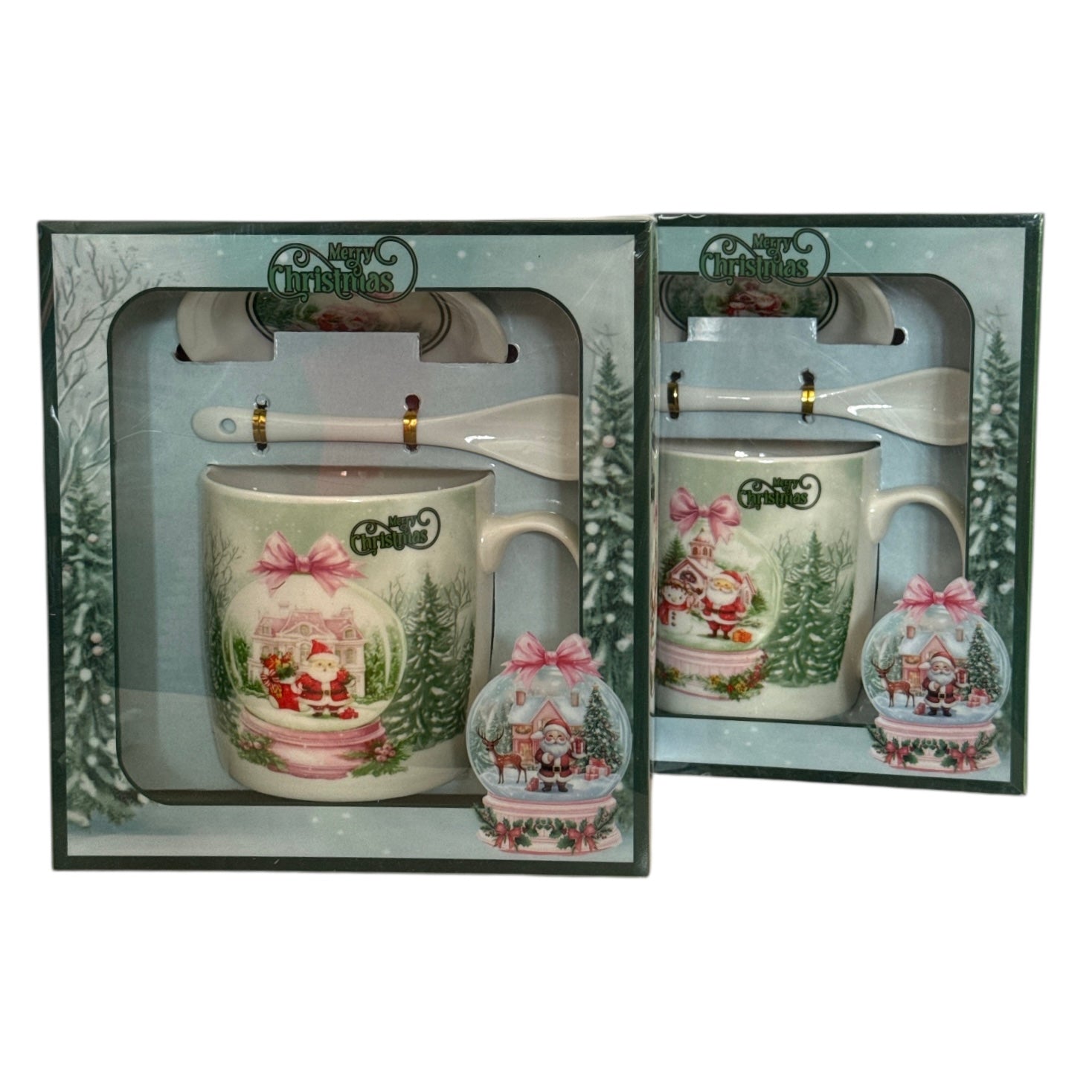 Setul este format dintr-o cană cu o farfurie cu linguriță și vine ambalat într-o cutie elegantă cu motive de Crăciun.