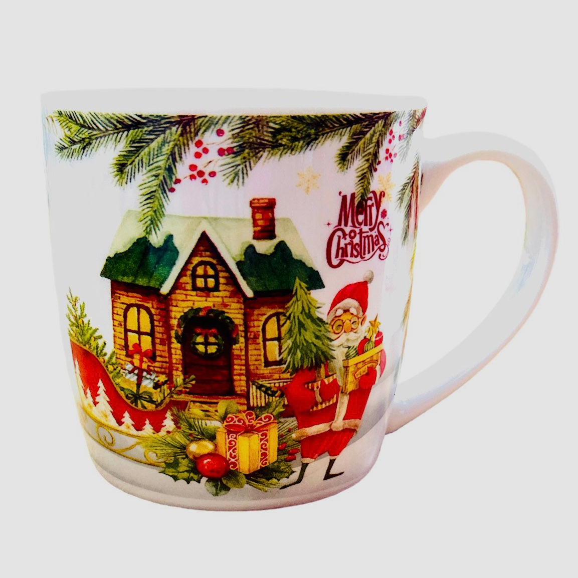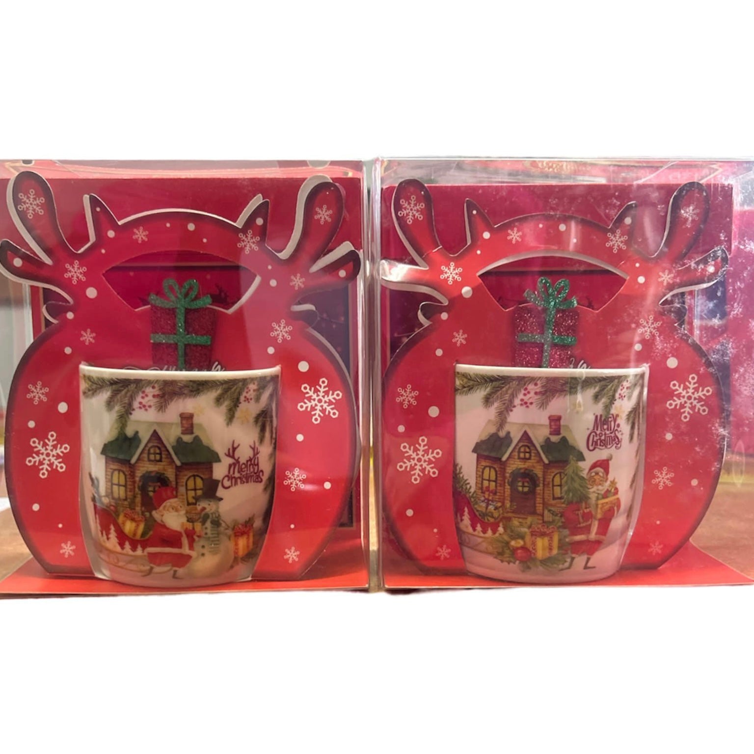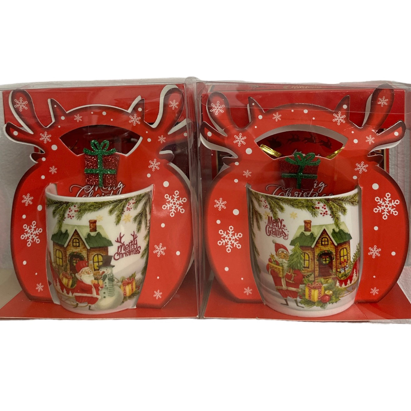 Cadoul este format dintr-o cană cu motive de Crăciun și vine ambalat într-o cutie elegantă în formă de ren