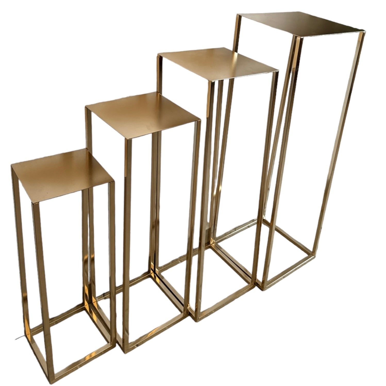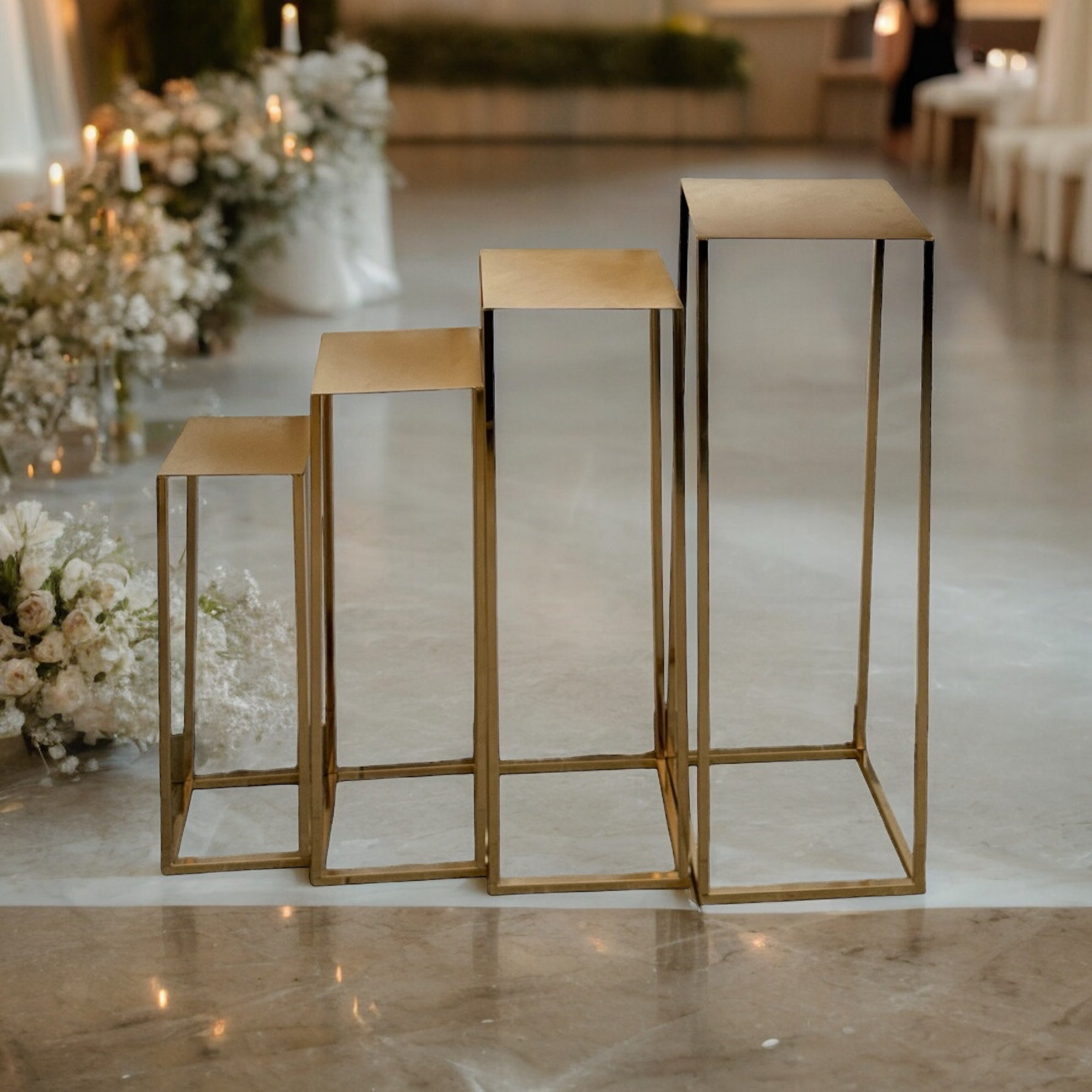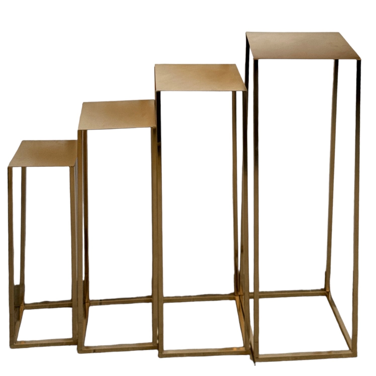 Adăugați un strop de modernitate și eleganță spațiului vostru cu acest set de mese metalice pătrate. Acest set include patru mese de dimensiuni diferite, care se îmbină perfect pentru a obține un efect vizual sofisticat și practic. Fabricate din metal durabil, aceste mese sunt ideale pentru a expune plante, obiecte decorative sau a servi ca suporturi elegante pentru diverse articole.