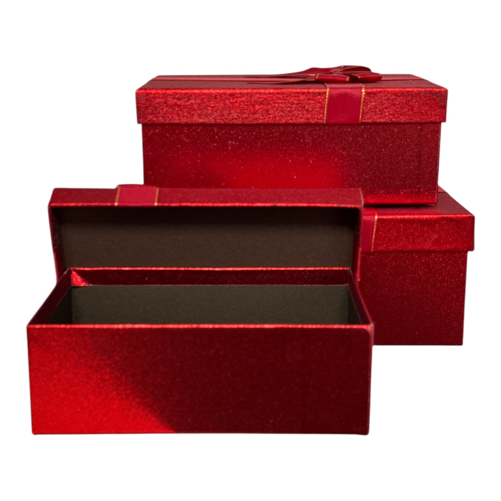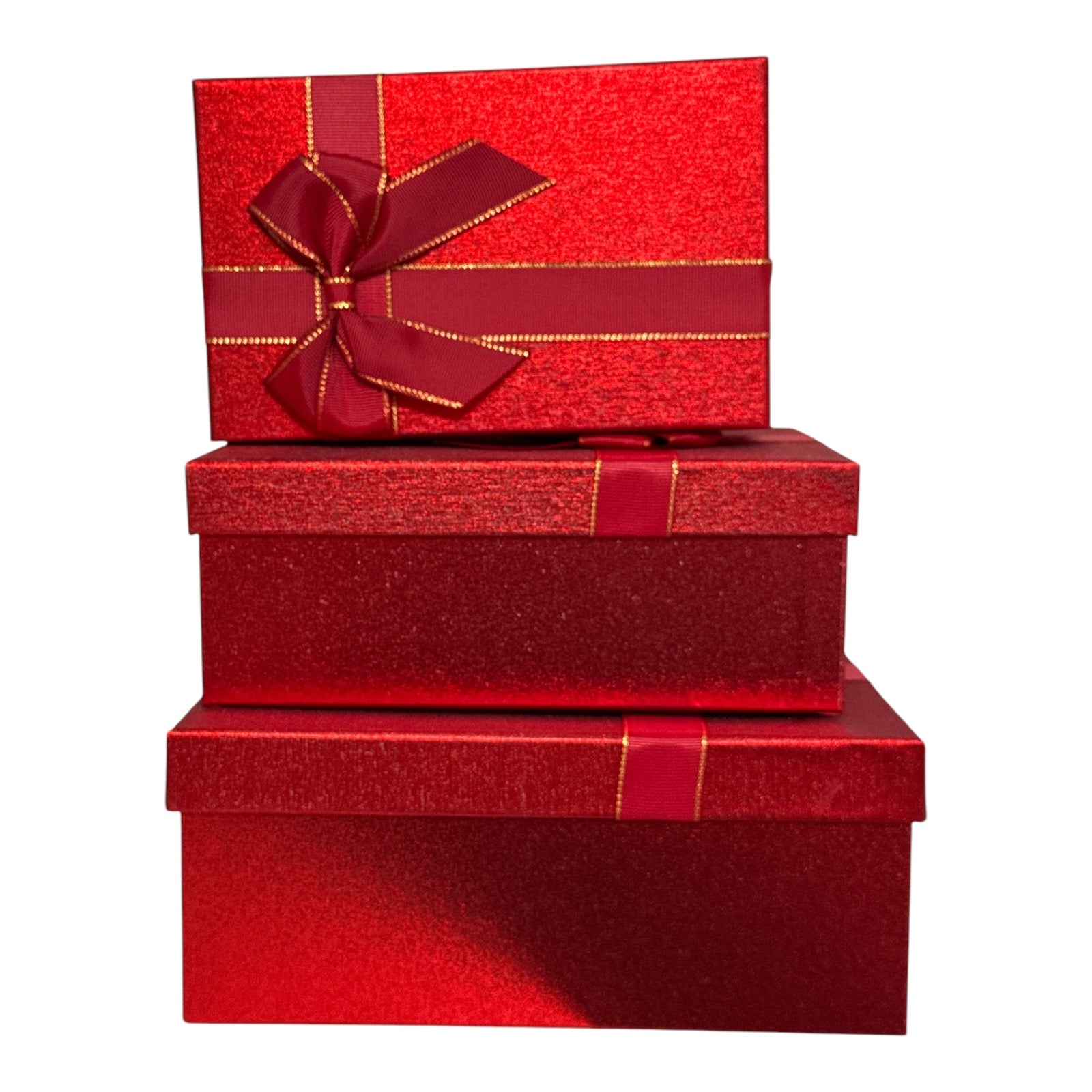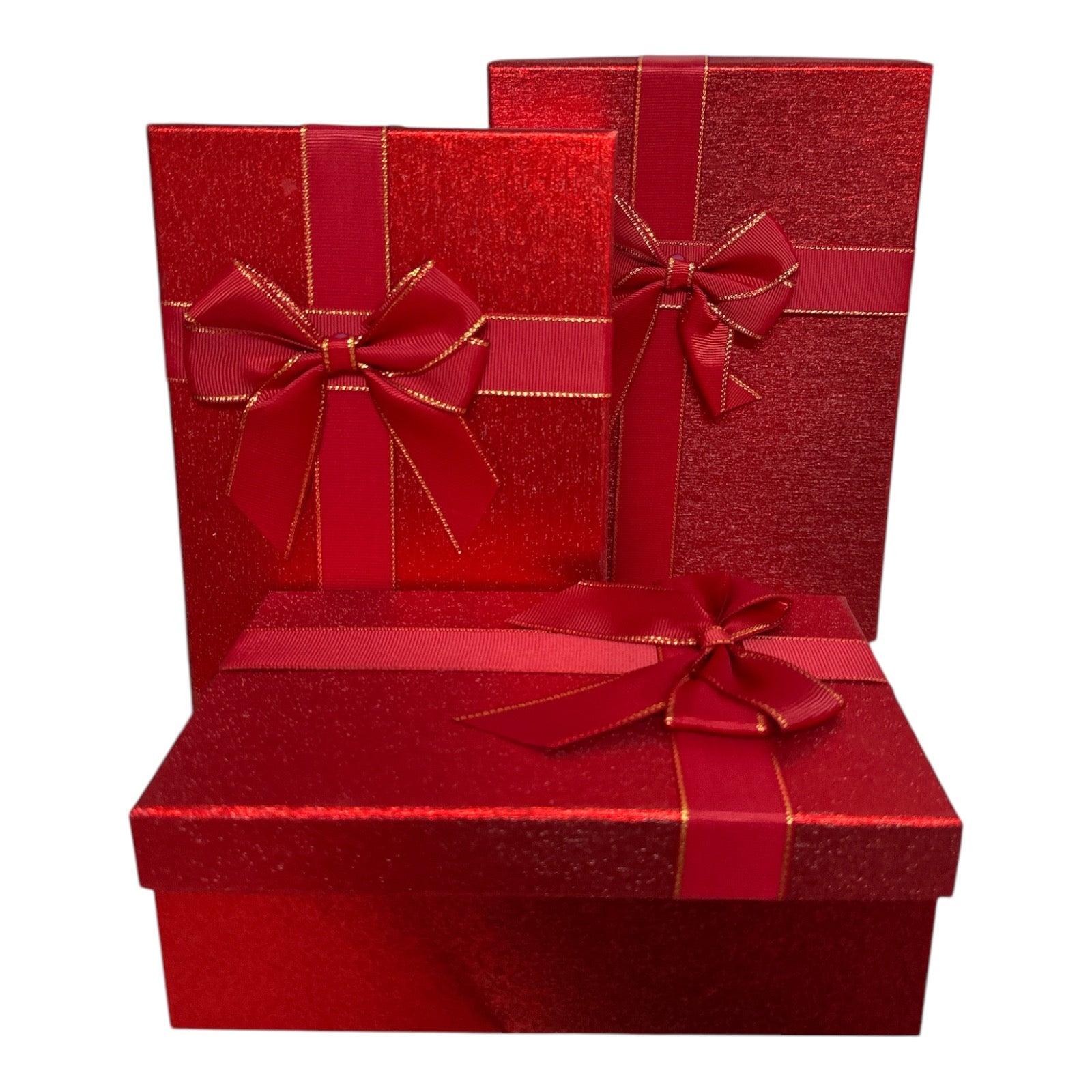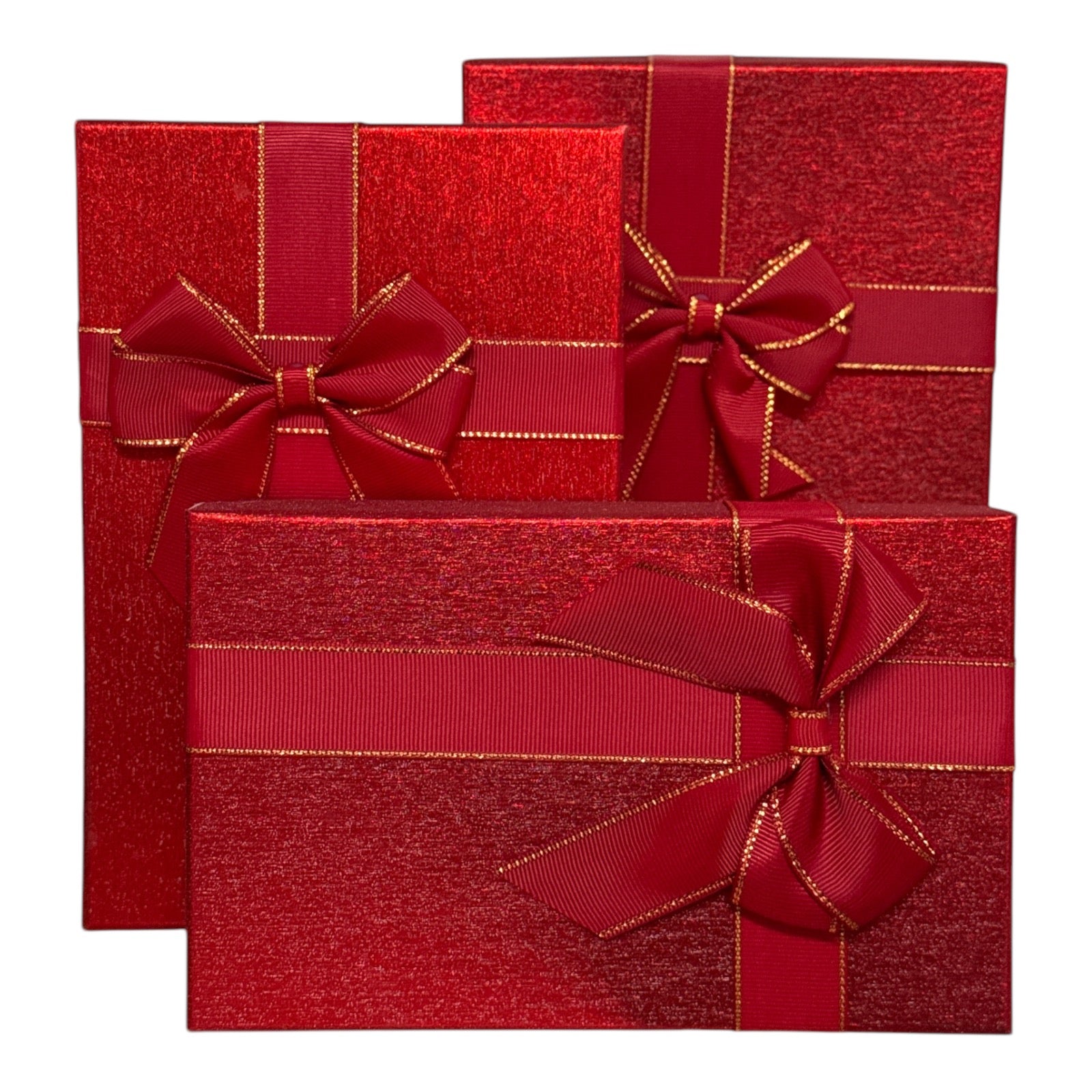 Acest set elegant de cutii de cadou roșii este perfect pentru a adăuga o notă festivă oricărui dar. Fiecare cutie este decorată cu o panglică roșie decorativă, cu margini aurii, oferindu-i un aspect sofisticat și atractiv. Ideal pentru orice ocazie, de la Crăciun și Anul Nou, până la aniversări și evenimente speciale. Alege aceste cutii de cadou pentru a oferi un plus de rafinament cadourilor tale!