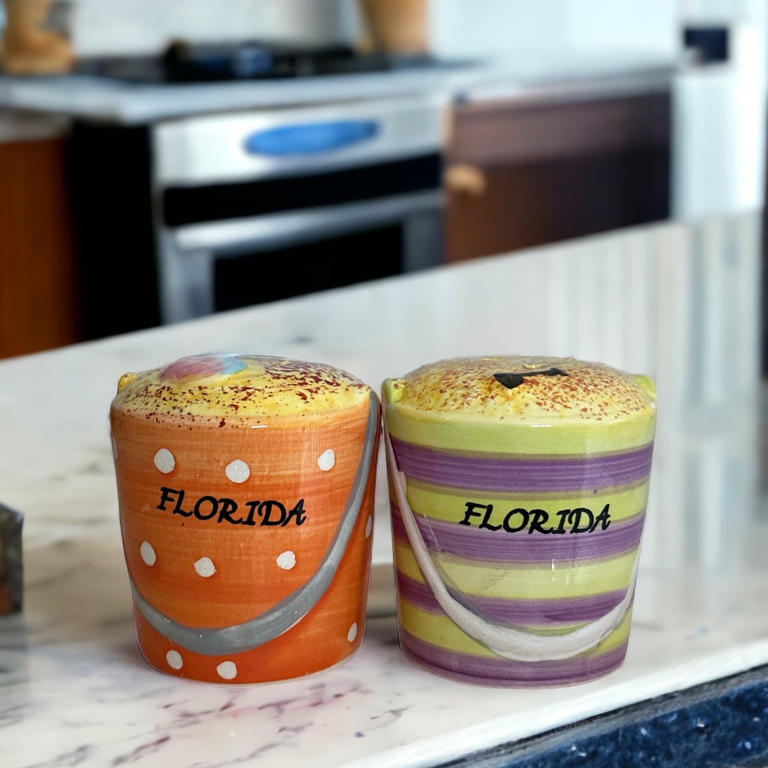 Păstrează principalele condimente din casă, sarea și piperul, în acest set frumos colorat din ceramică.