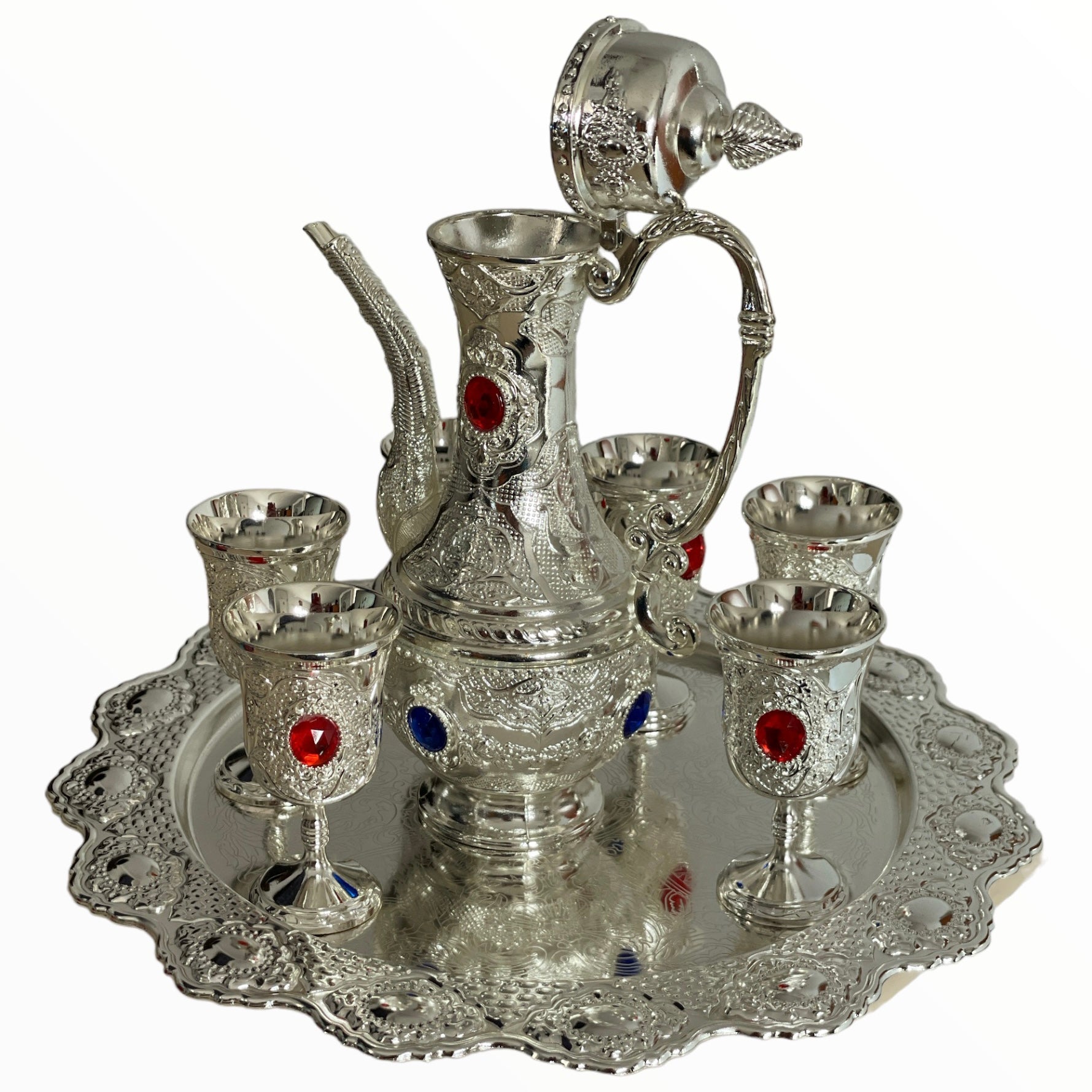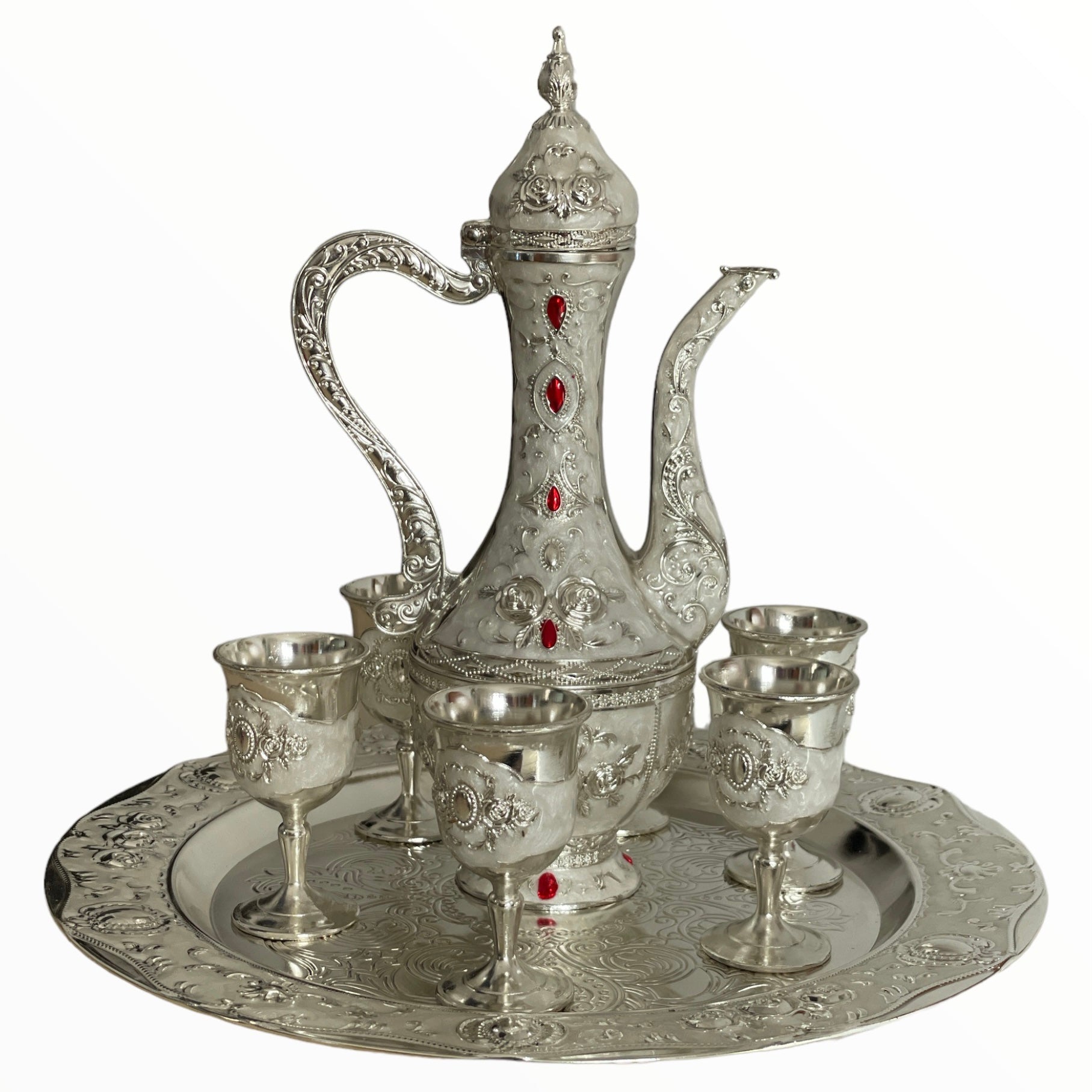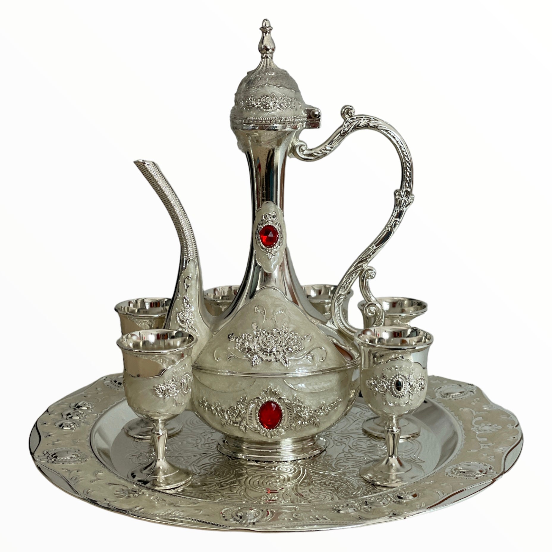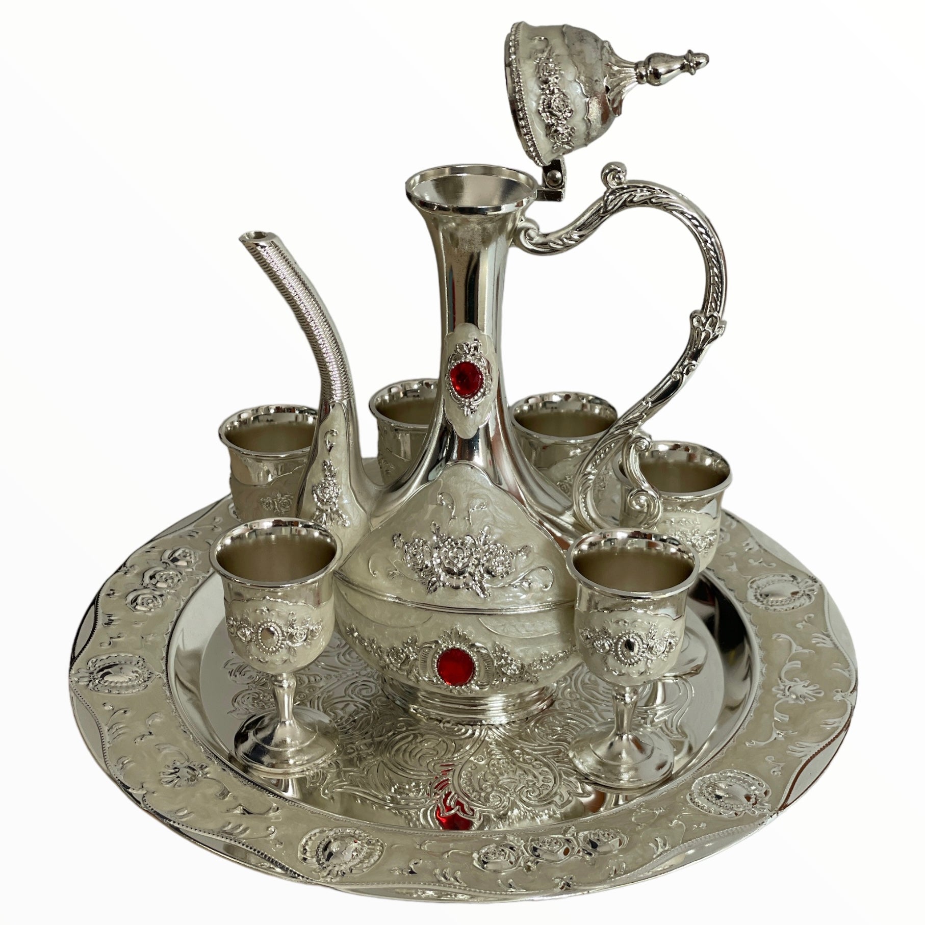 Confecționat din alpaca, setul cu carafă și pahare are un design rafinat datorită culorii antichizate. Este o piesă elegantă și utilă, care te va ajuta să creezi un decor Vintage.