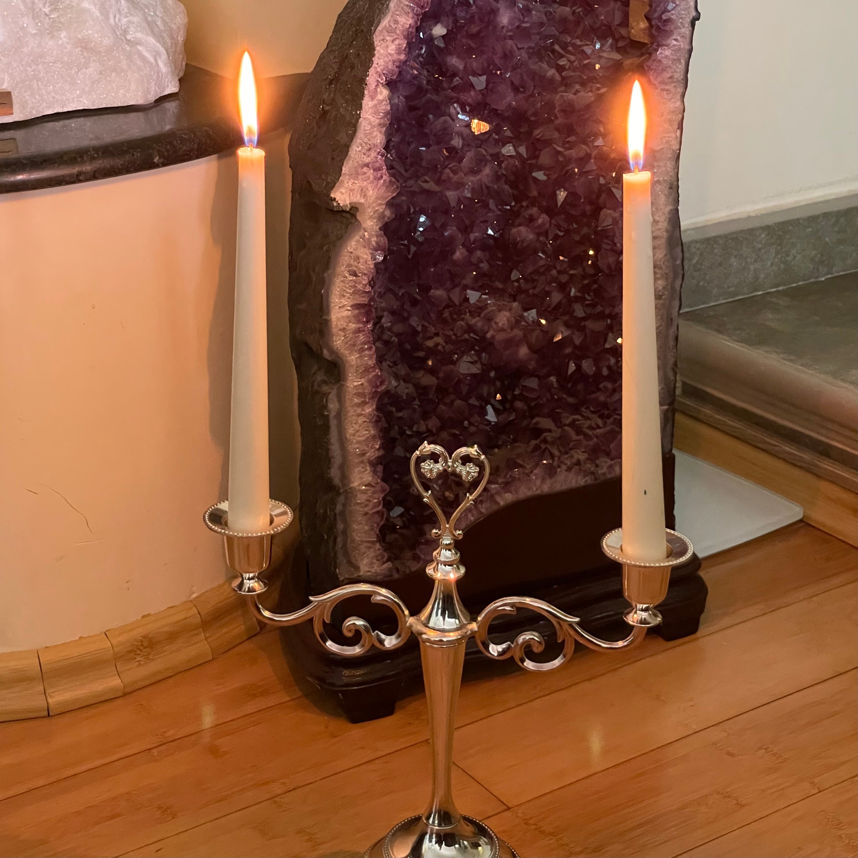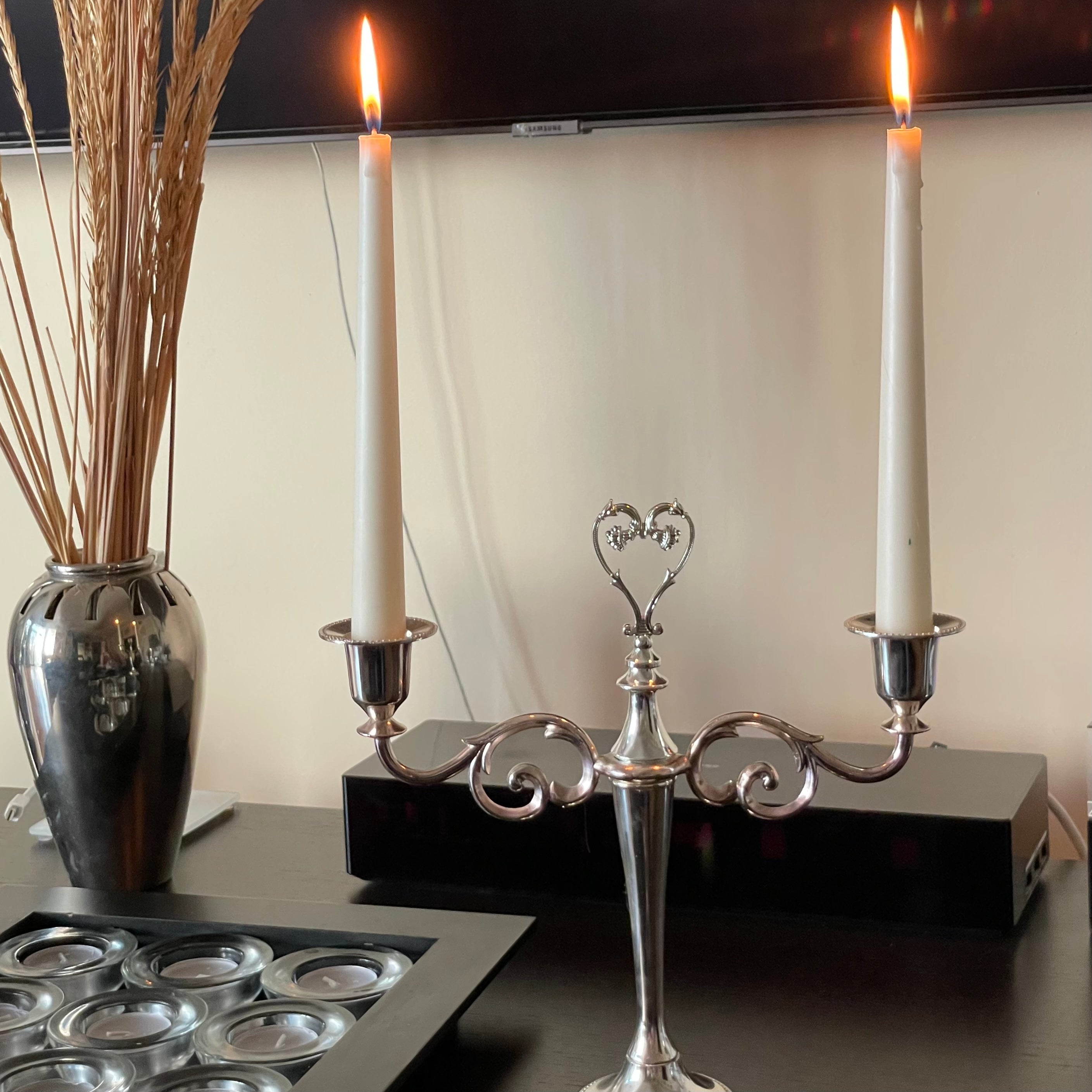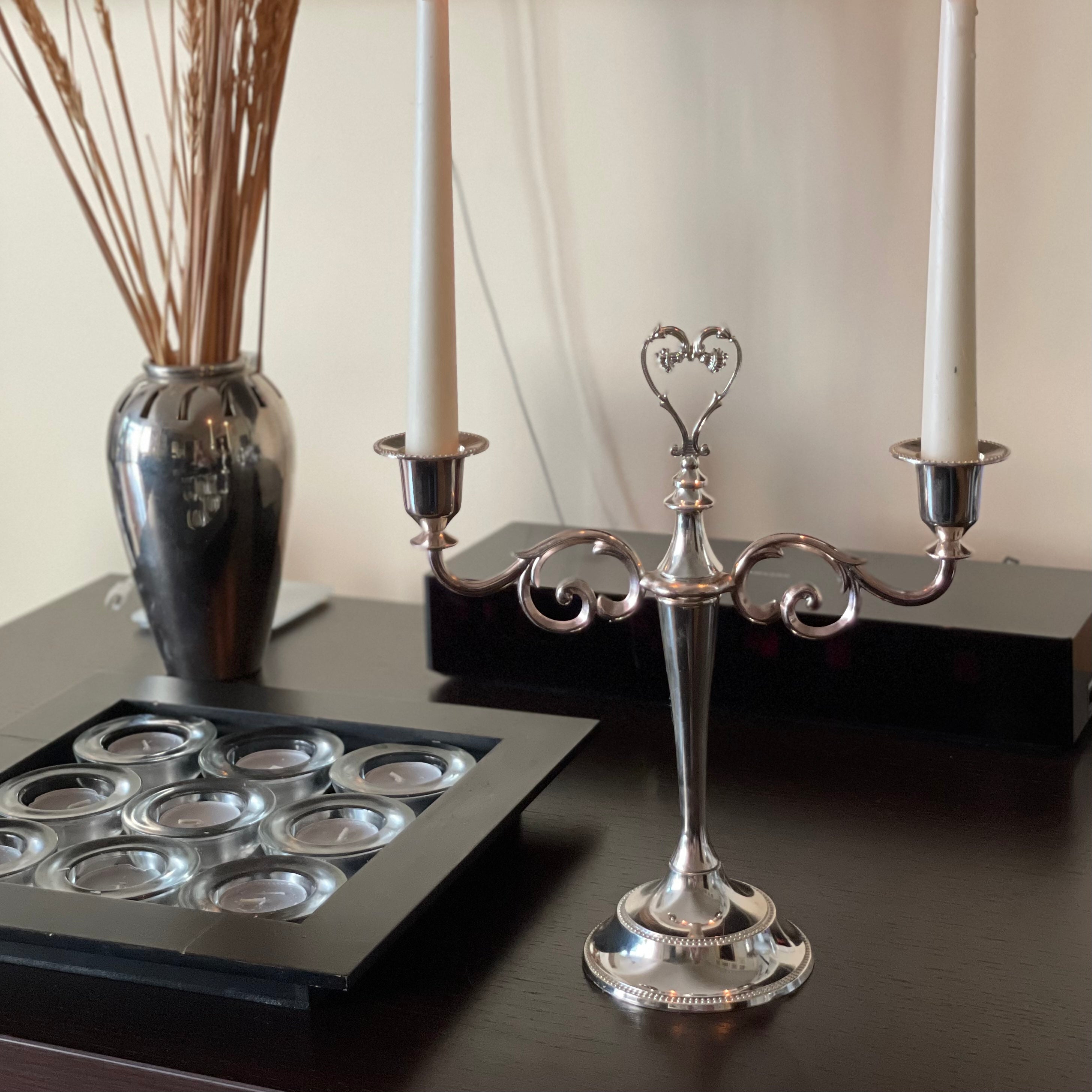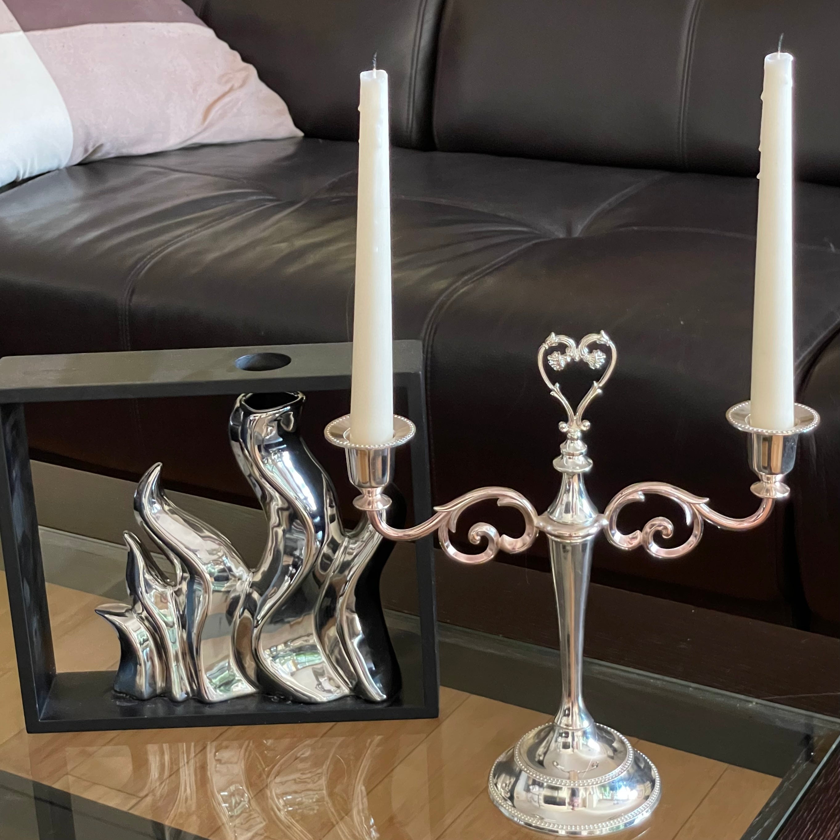Sfeșnicul este un element de decor important, o piesă de design elegantă și utilă, care te va ajuta să stilizezi si să luminezi masa. Este util atât pentru mesele festive de sărbători cât și pentru nunți botezuri sau petreceri private. Confecționat din metal argintiu are un aspect rafinat.