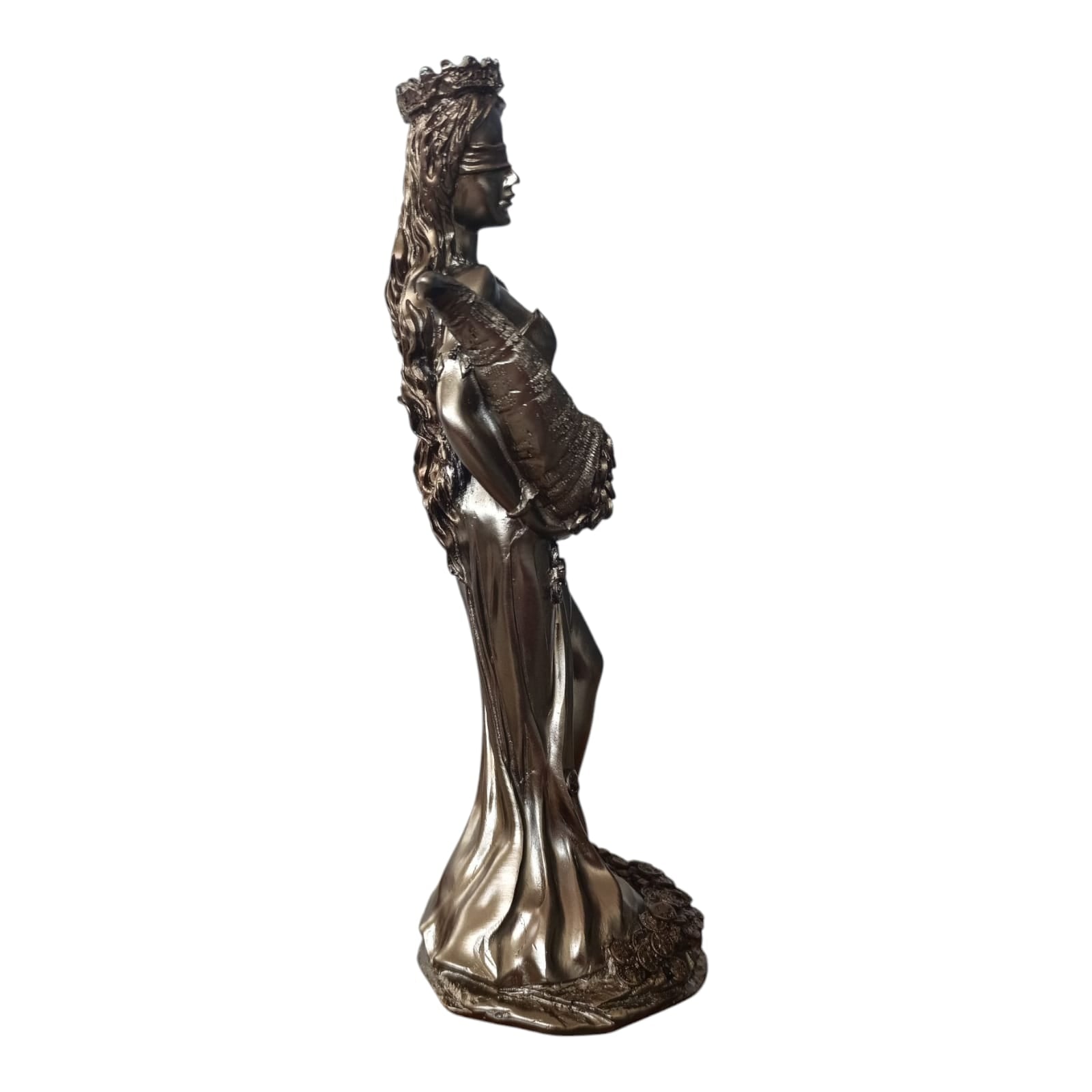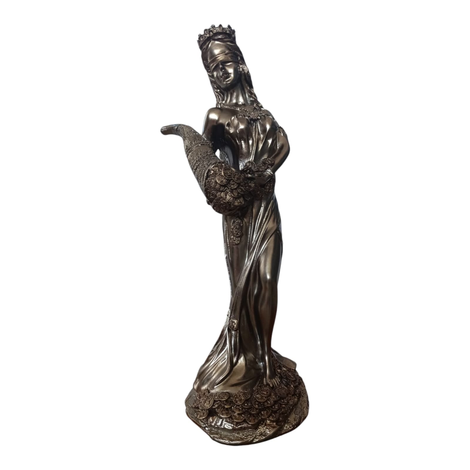 Adaugă un strop de rafinament și simbol al prosperității în casa ta cu această superbă statuetă reprezentând Zeița Abundenței. Realizată cu o atenție deosebită la detalii, statueta prezintă o femeie elegantă, purtând o coroană și ținând un corn al abundenței plin de monede, simbolizând bogăția, fertilitatea și belșugul.