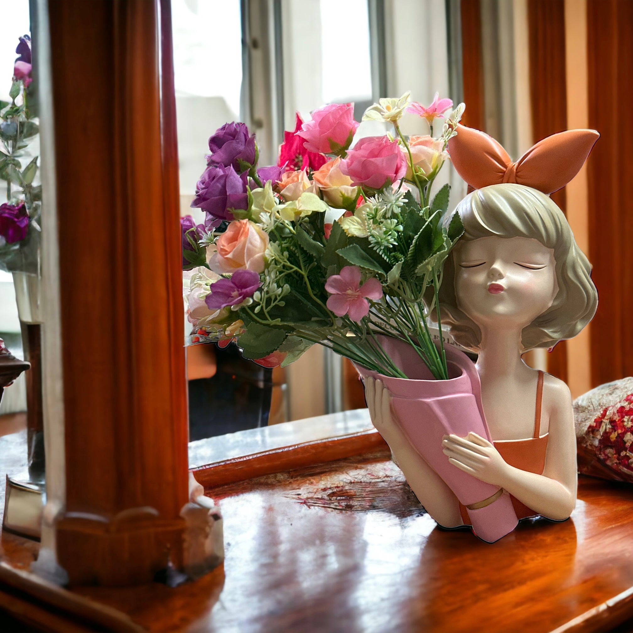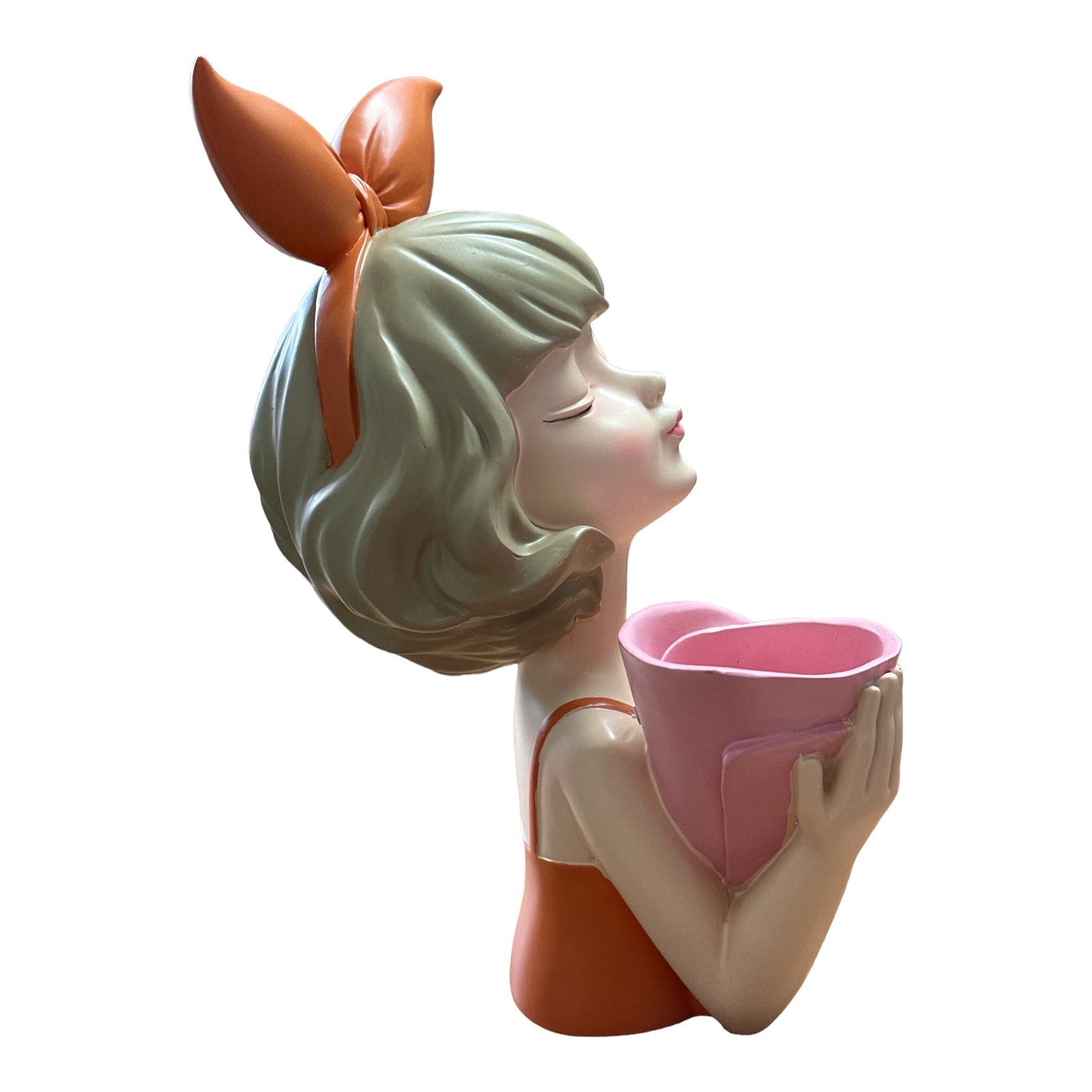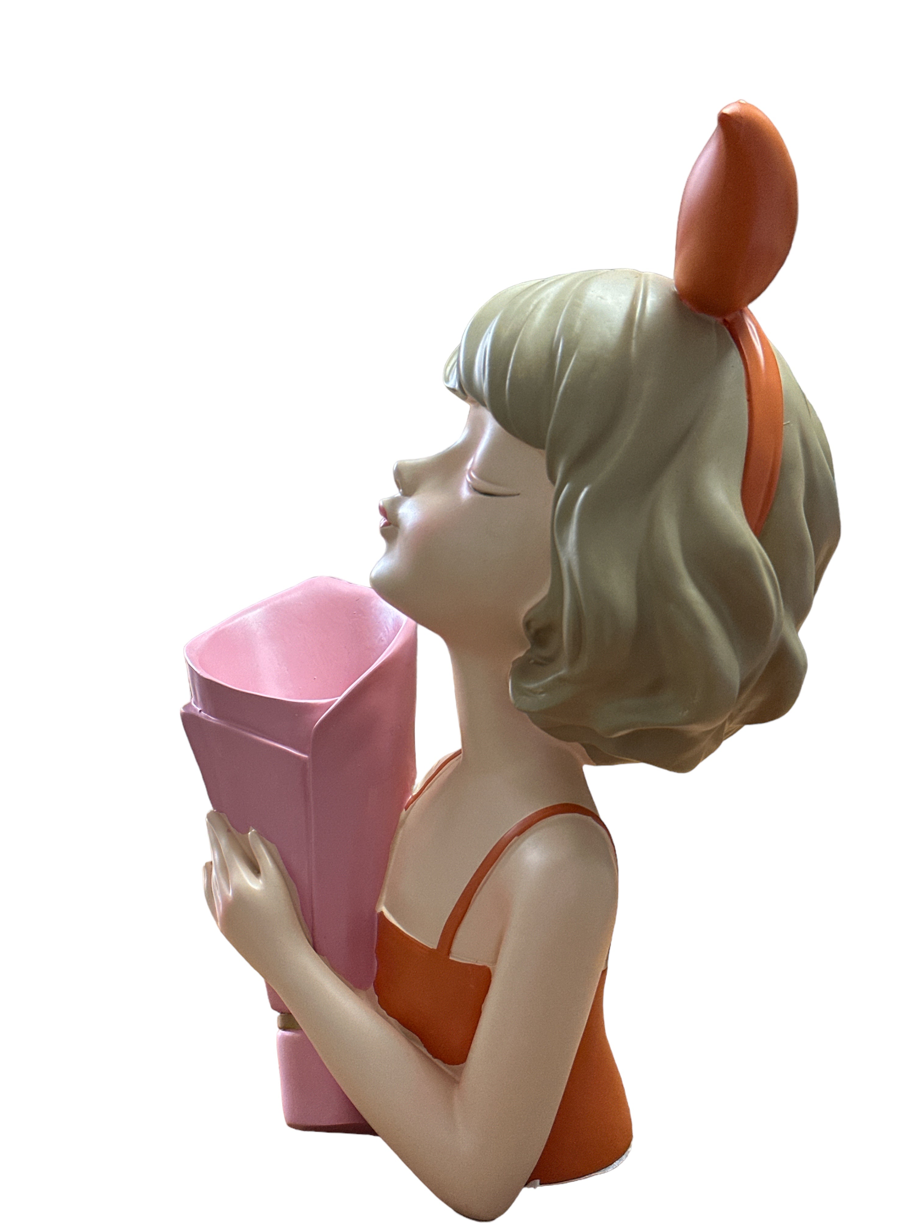 O astfel de statuetă în formă de Fată cu vază poate să fie o piesă de decor atractivă pentru o casă și poate să servească și un scop practic. Poate fi plasat într-un loc vizibil vaza fiind destinată pentru orice tip de aranjament sau buchet floral natural sau artificial Designul ei atrăgător creează alături de florile preferate un minunat obiect de decor care va atrage toate privirile.De asemenea, poate să fie un cadou potrivit pentru cei care doresc să adauge un strop de personalitate în amenajarea casei lor.
