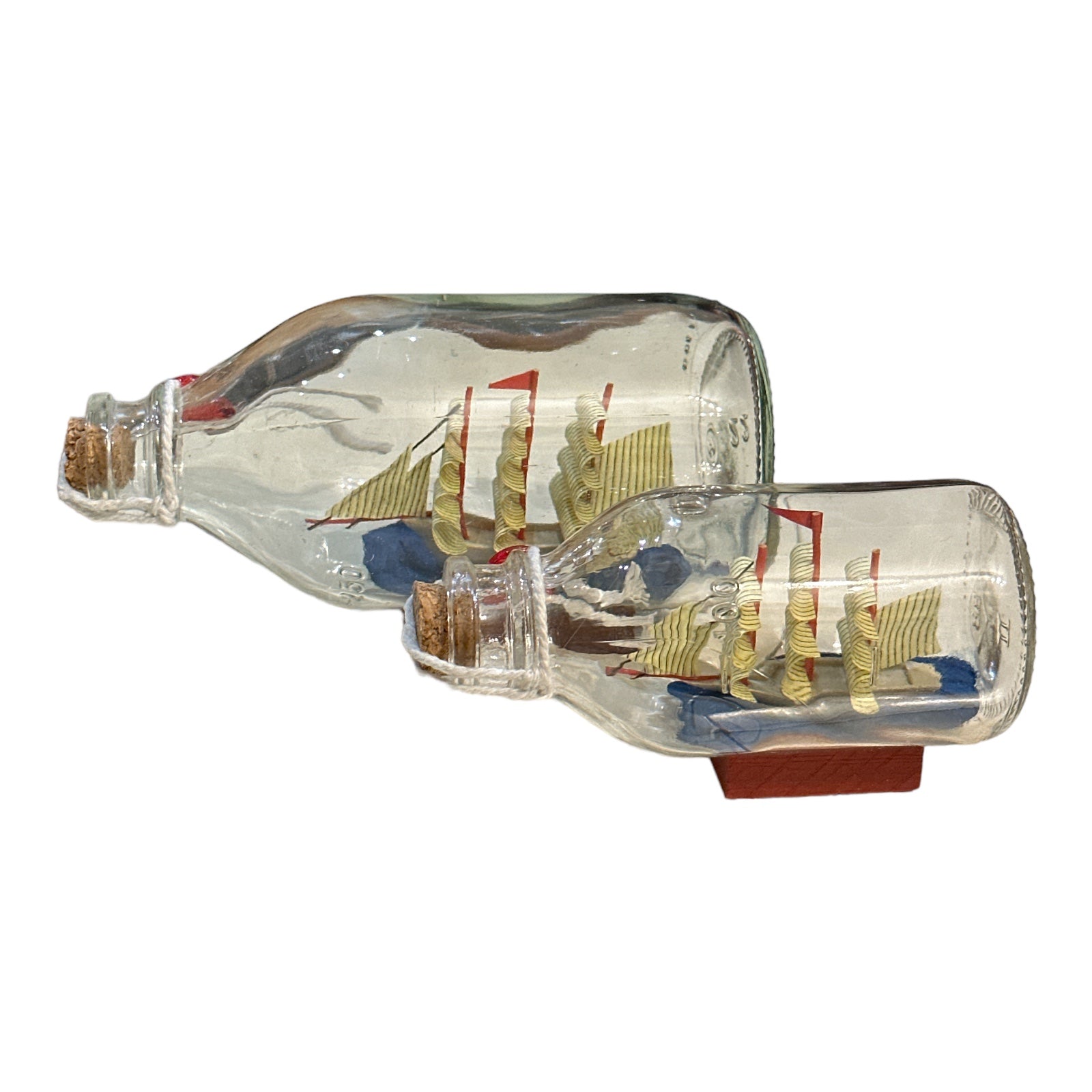 Sunt confecționate din sticlă transparentă și conțin o corabie în miniatură sigilată cu un dop de plută.