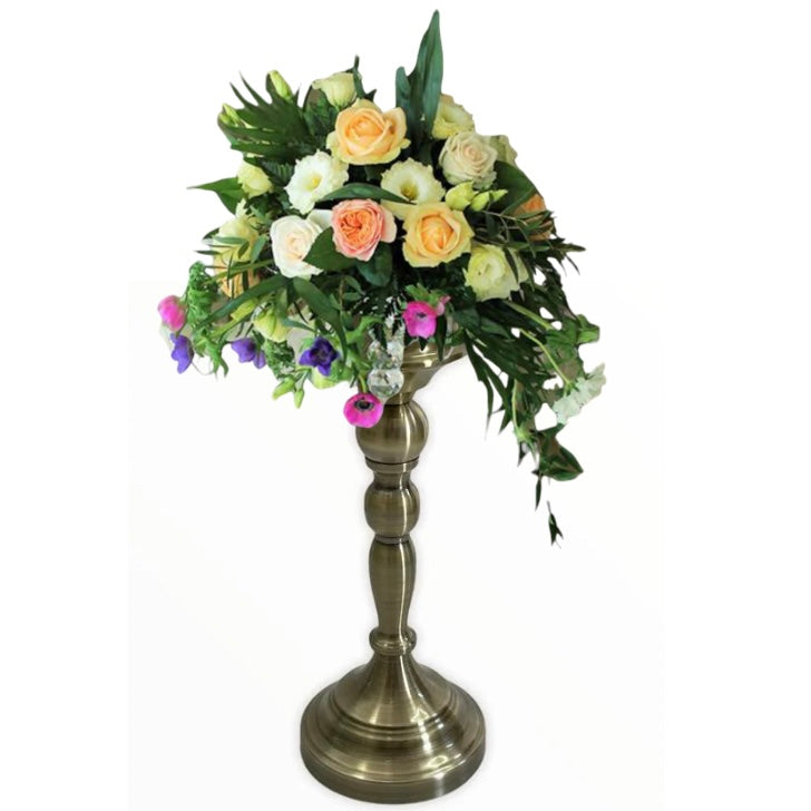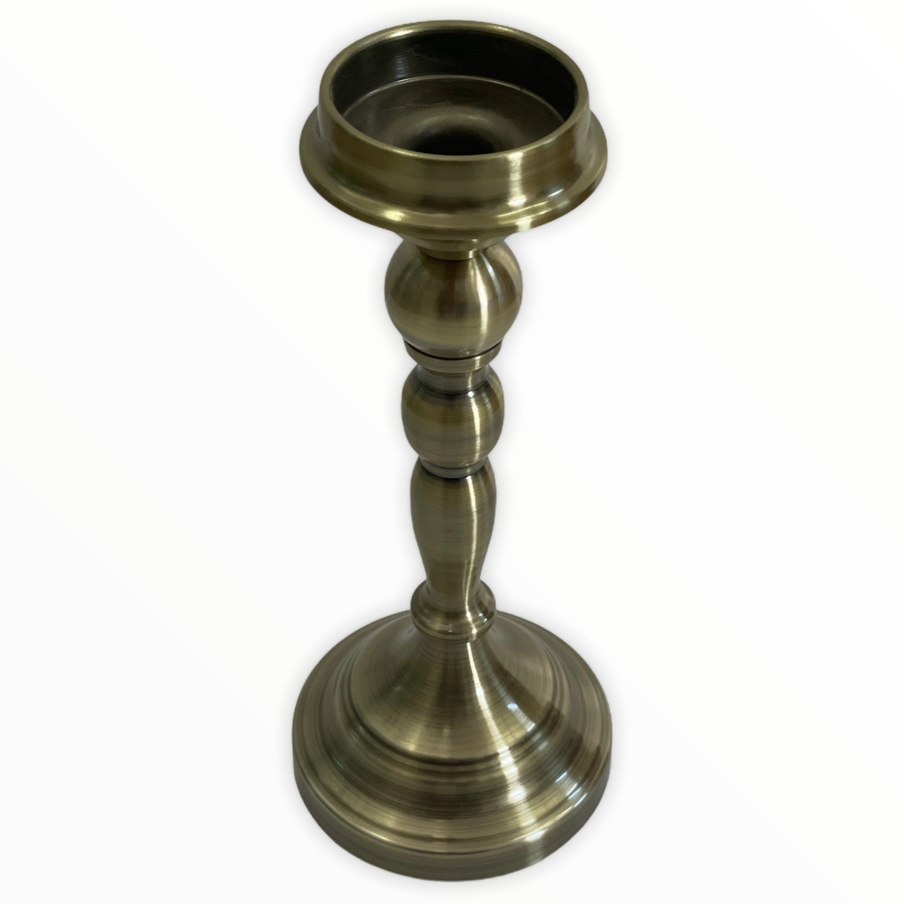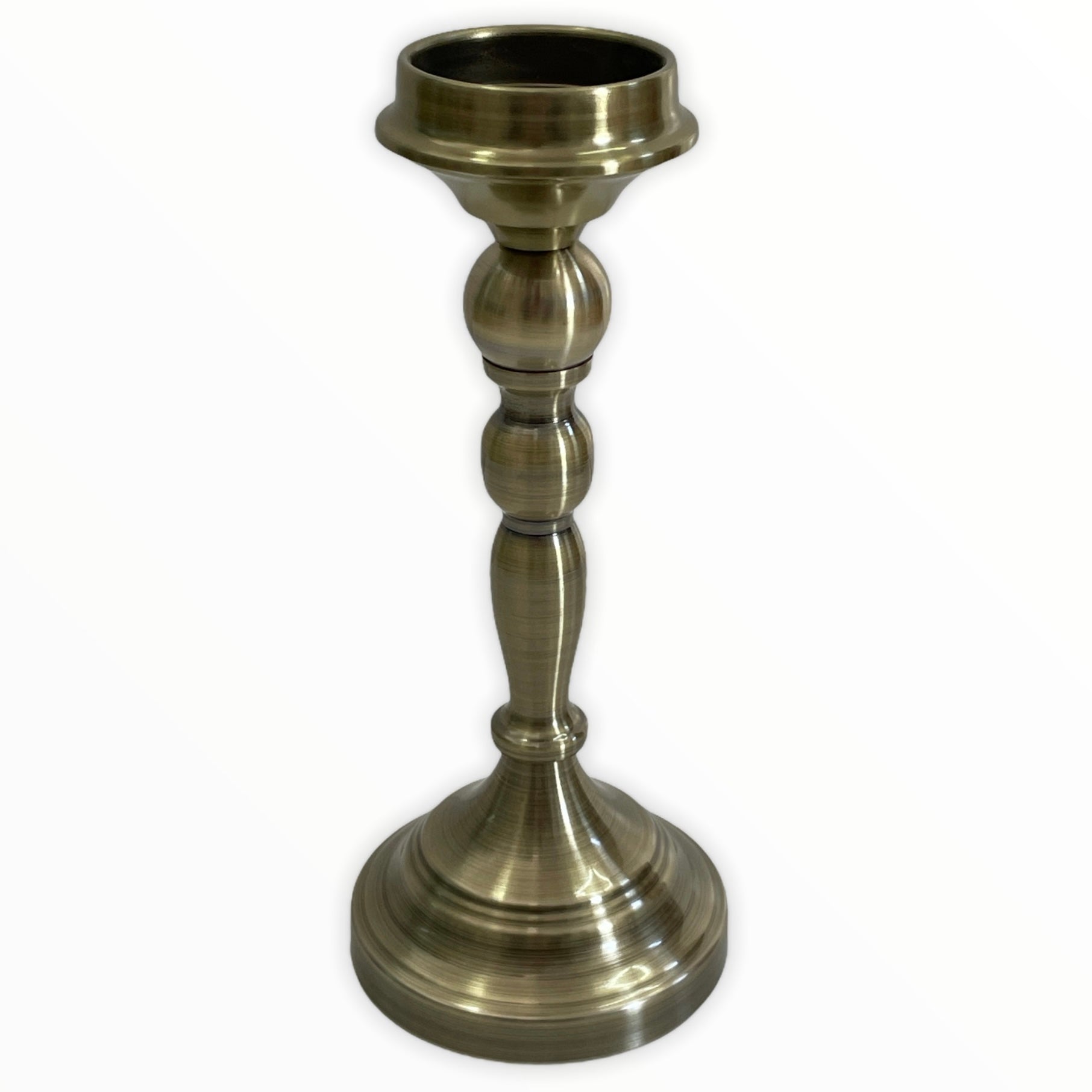 Sfeșnicul este un element de decor important, o piesă de design elegantă și utilă, care te va ajuta să stilizezi și să luminezi masa. Este util atât pentru mesele festive de sărbători cât și pentru nunți botezuri sau petreceri private. Confecționat din metal are un aspect rafinat datorită culorii antichizate. Poate fi folosit și ca suport pentru un aranjament floral.