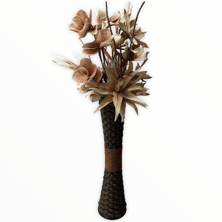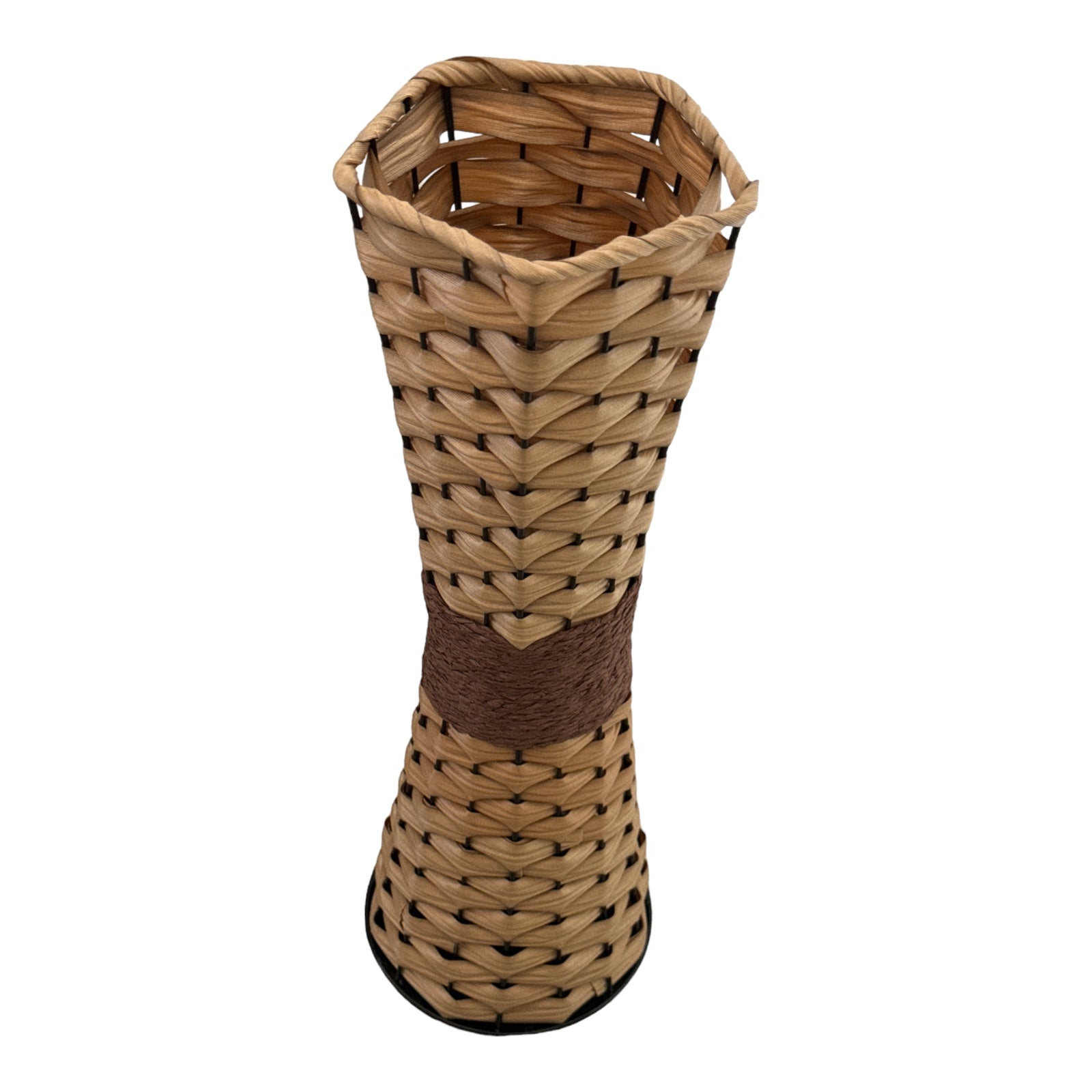 Suportul este fabricat din schelet metalic învelit în imitație de ratan.