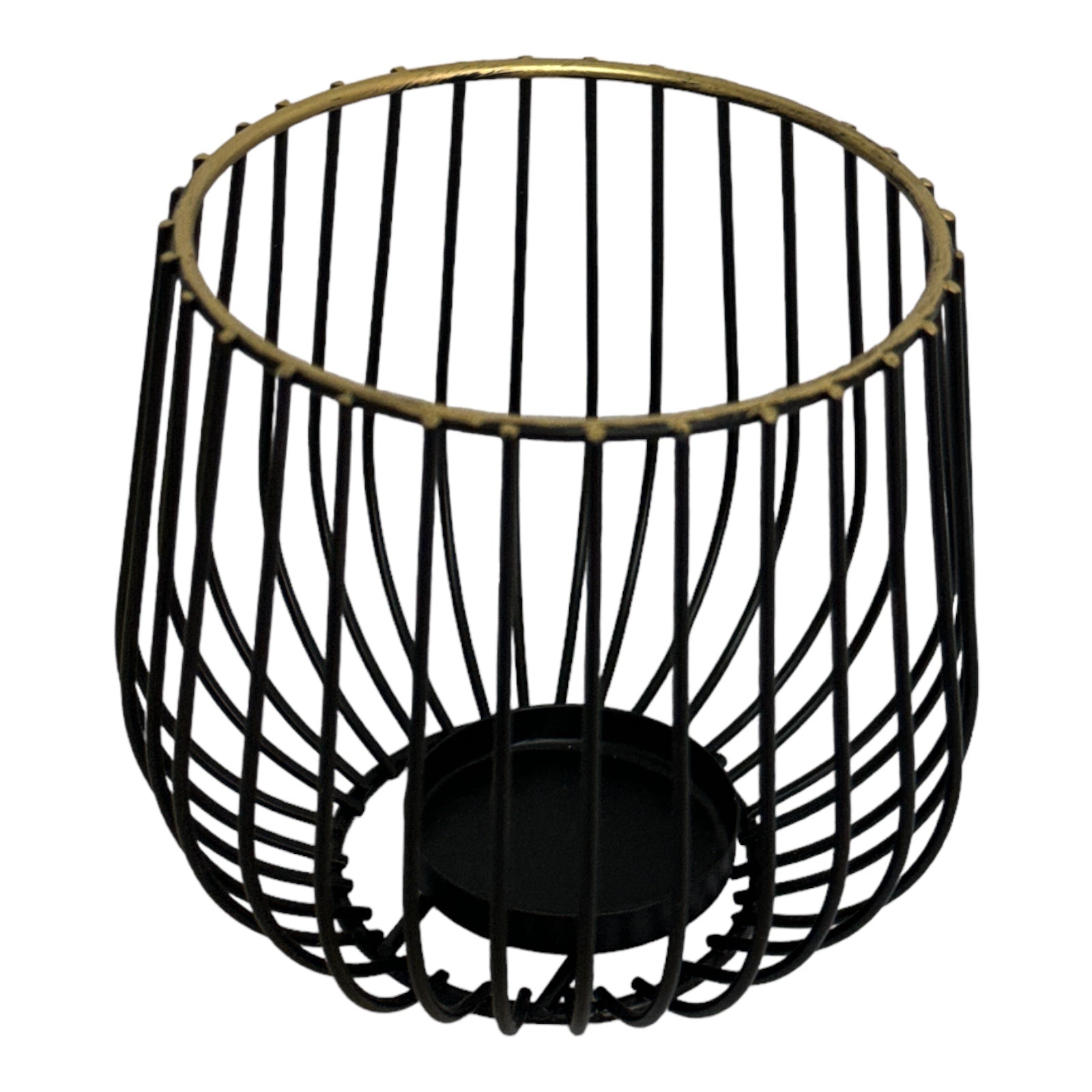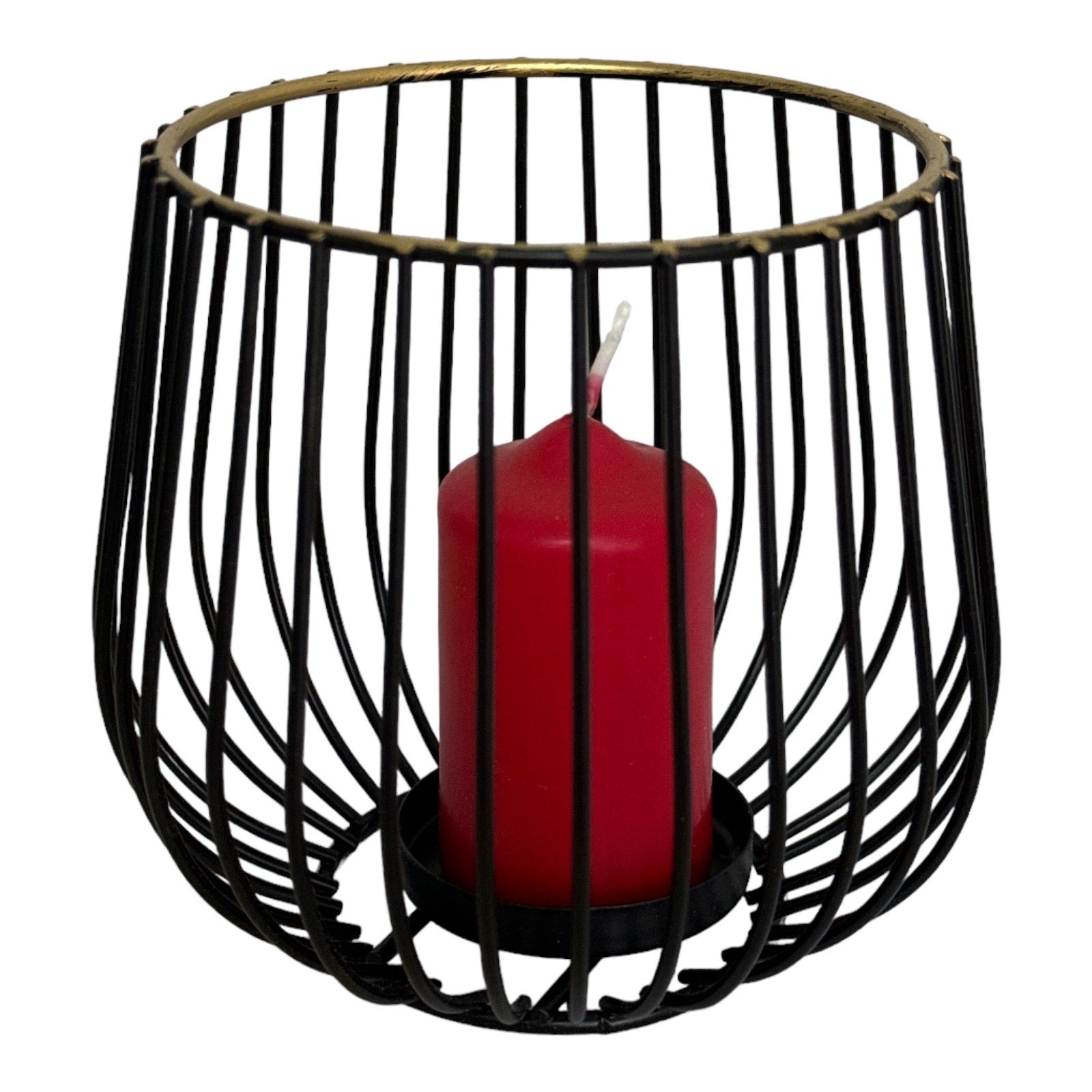 Este fabricat din metal vopsit cu negru și auriu,poate fi folosit cu lumânare pastilă sau lumânare normală(lumânarea are scop de prezentare și nu este inclusă în preț)