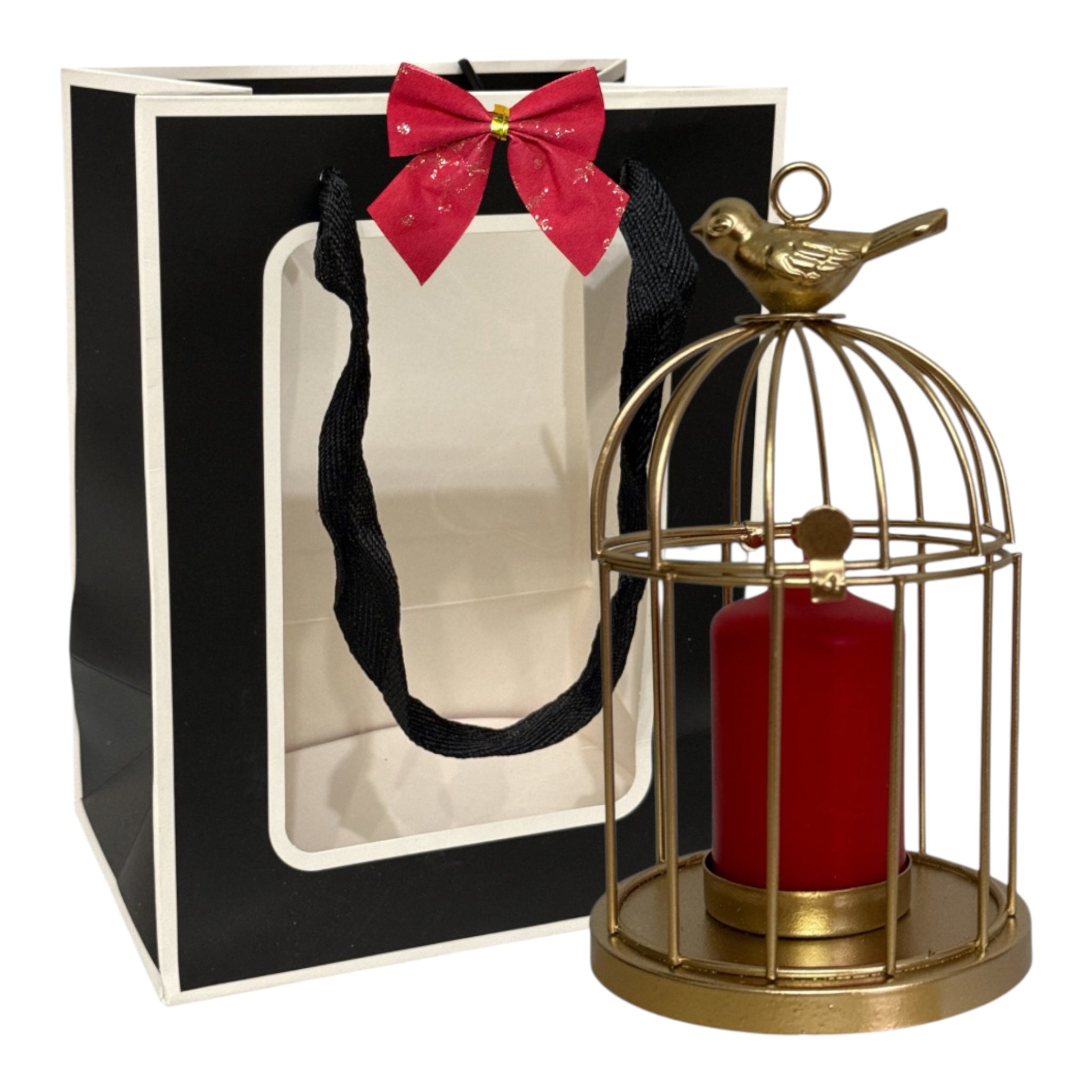 Este fabricat din metal vopsit cu auriu, poate fi folosit cu lumânare pastilă sau lumânare normală(lumânarea are scop de prezentare și nu este inclusă în preț)