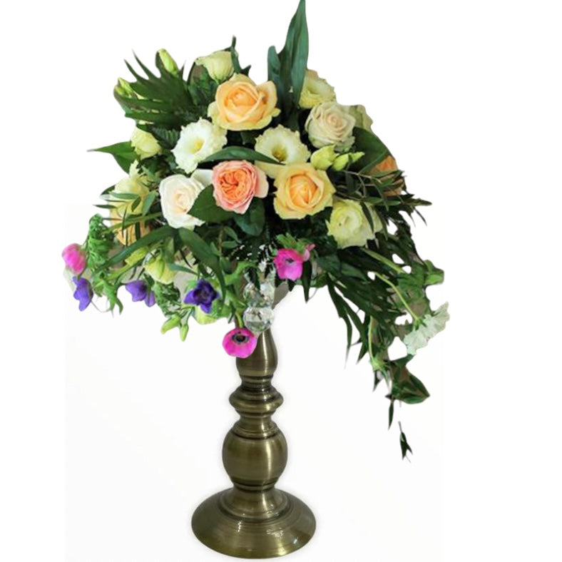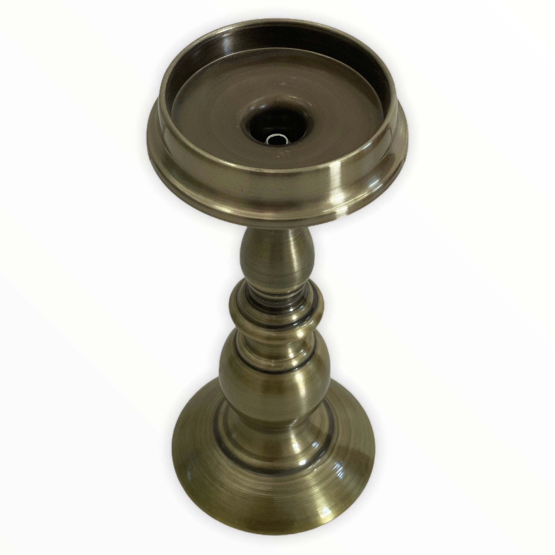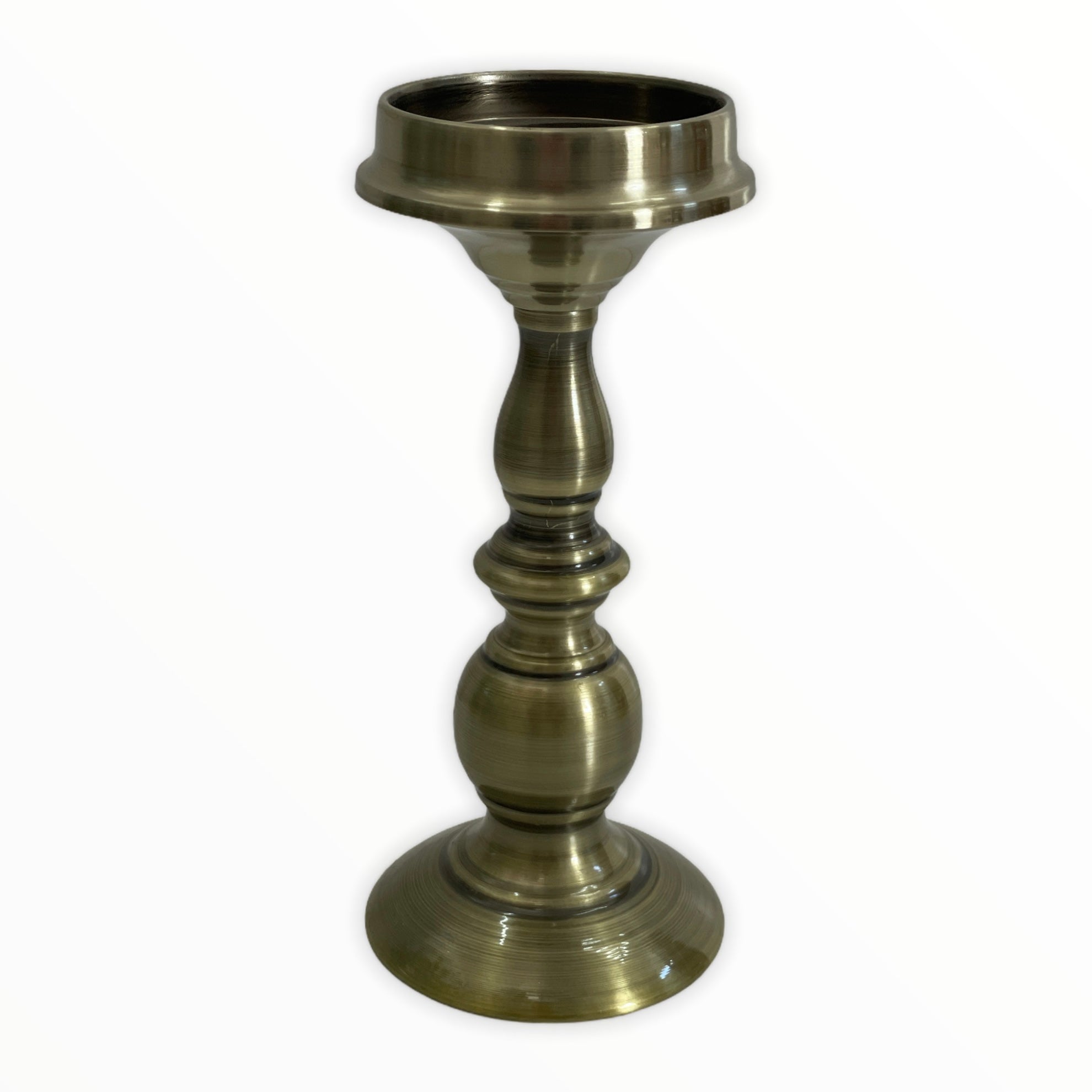 Sfeșnicul este un element de decor important, o piesă de design elegantă și utilă, care te va ajuta să stilizezi și să luminezi masa. Este util atât pentru mesele festive de sărbători cât și pentru nunți botezuri sau petreceri private. Confecționat din metal are un aspect rafinat datorită culorii antichizate. Poate fi folosit și ca suport pentru un aranjament floral.