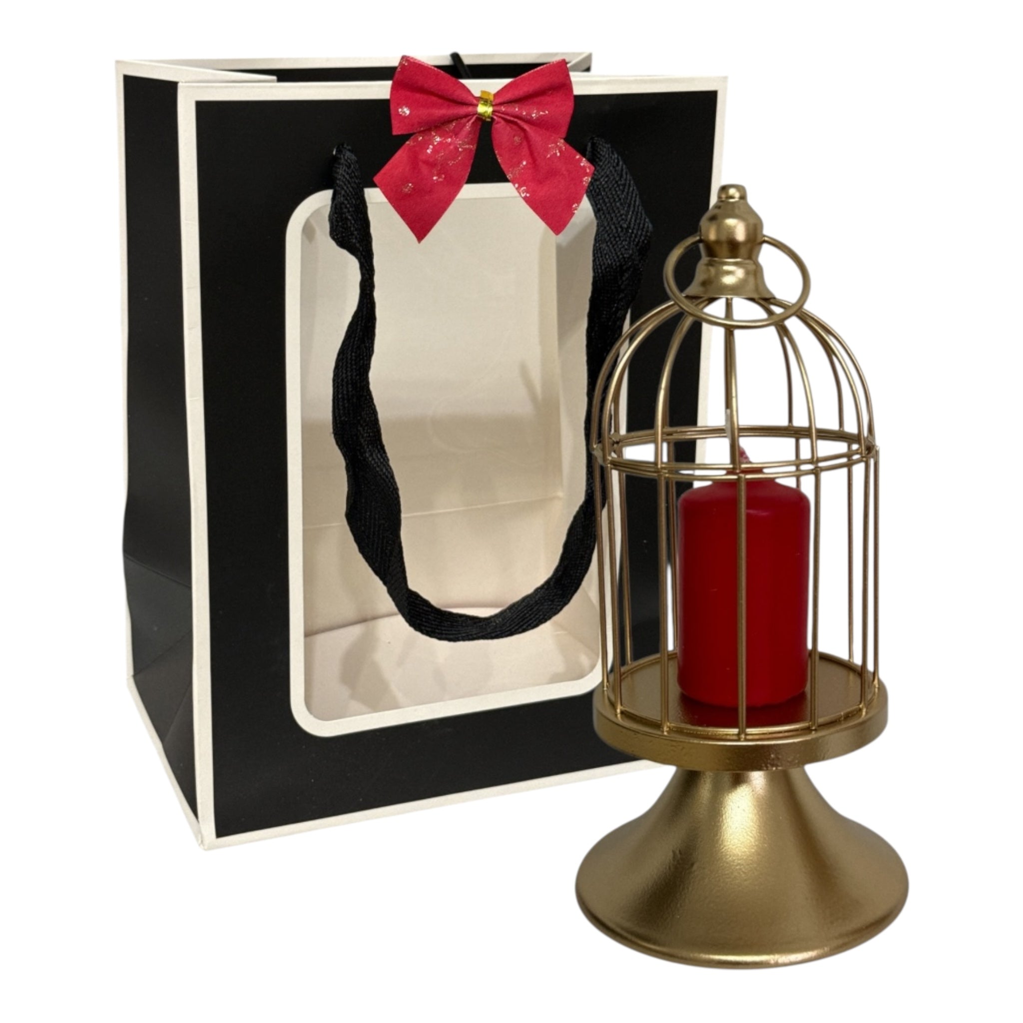 Este fabricat din metal vopsit cu auriu, poate fi folosit cu lumânare pastilă sau lumânare normală(lumânarea are scop de prezentare și nu este inclusă în preț)