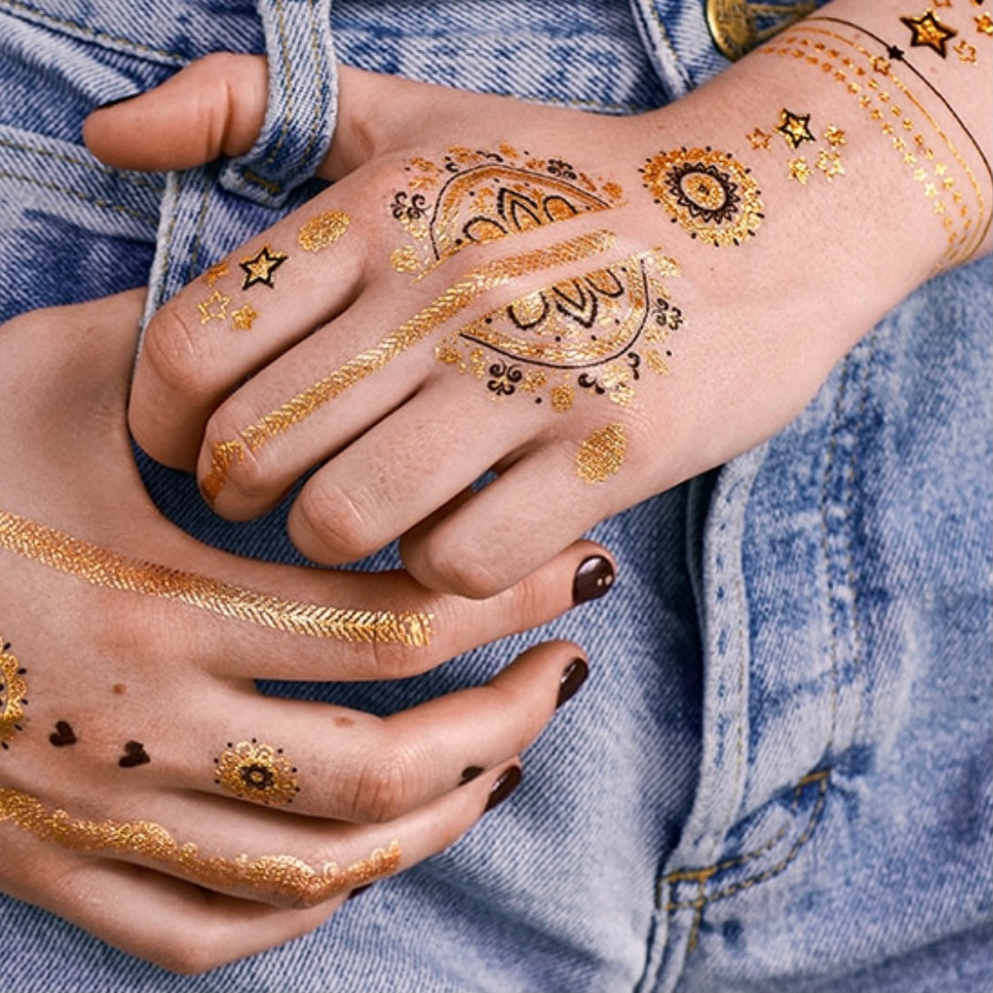 Mod de utilizare: Aplică pe încheietura sau pe partea anterioara a brațului pentru un efect splendid de brățară, pe gât pentru efectul de choker sau pe gleznă. Ori cere ajutorul unei prietene pentru a-ți crea design-uri unice pe spate. Se aplică pe pielea curată și se tamponează cu apă cu ajutorul unui burete moale.