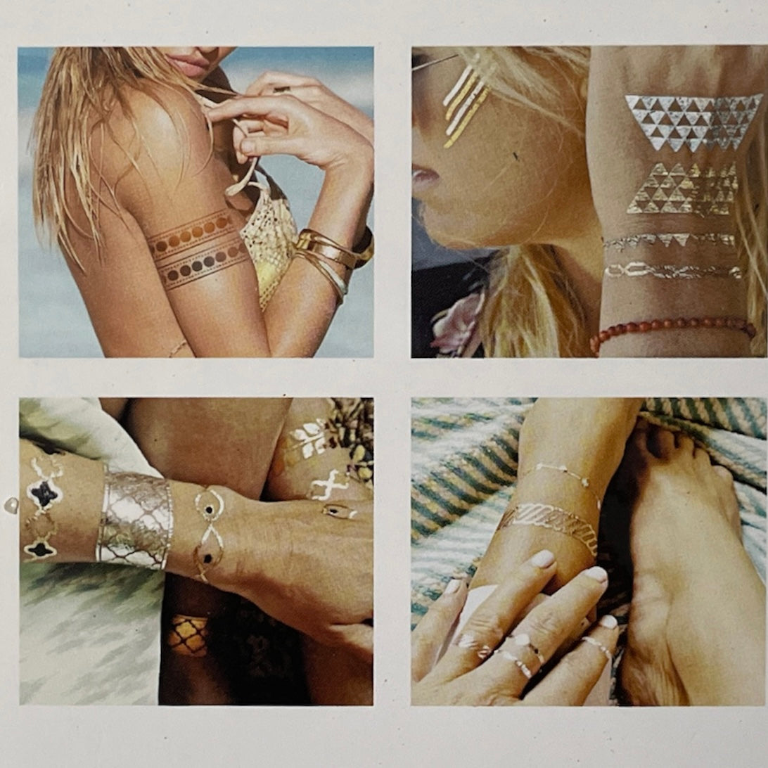 Mod de utilizare: Aplică pe încheietura sau pe partea anterioara a brațului pentru un efect splendid de brățară, pe gât pentru efectul de choker sau pe gleznă. Ori cere ajutorul unei prietene pentru a-ți crea design-uri unice pe spate. Se aplică pe pielea curată și se tamponează cu apă cu ajutorul unui burete moale.