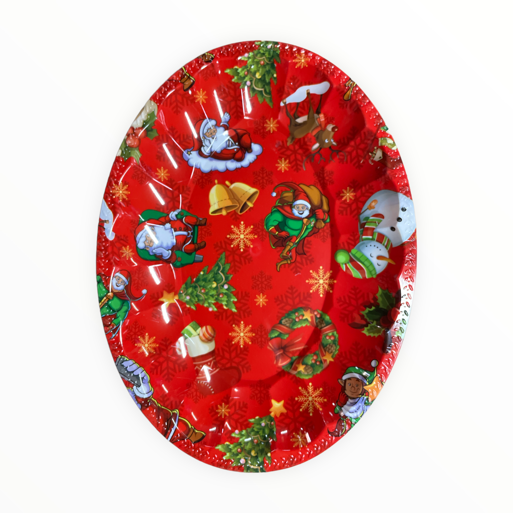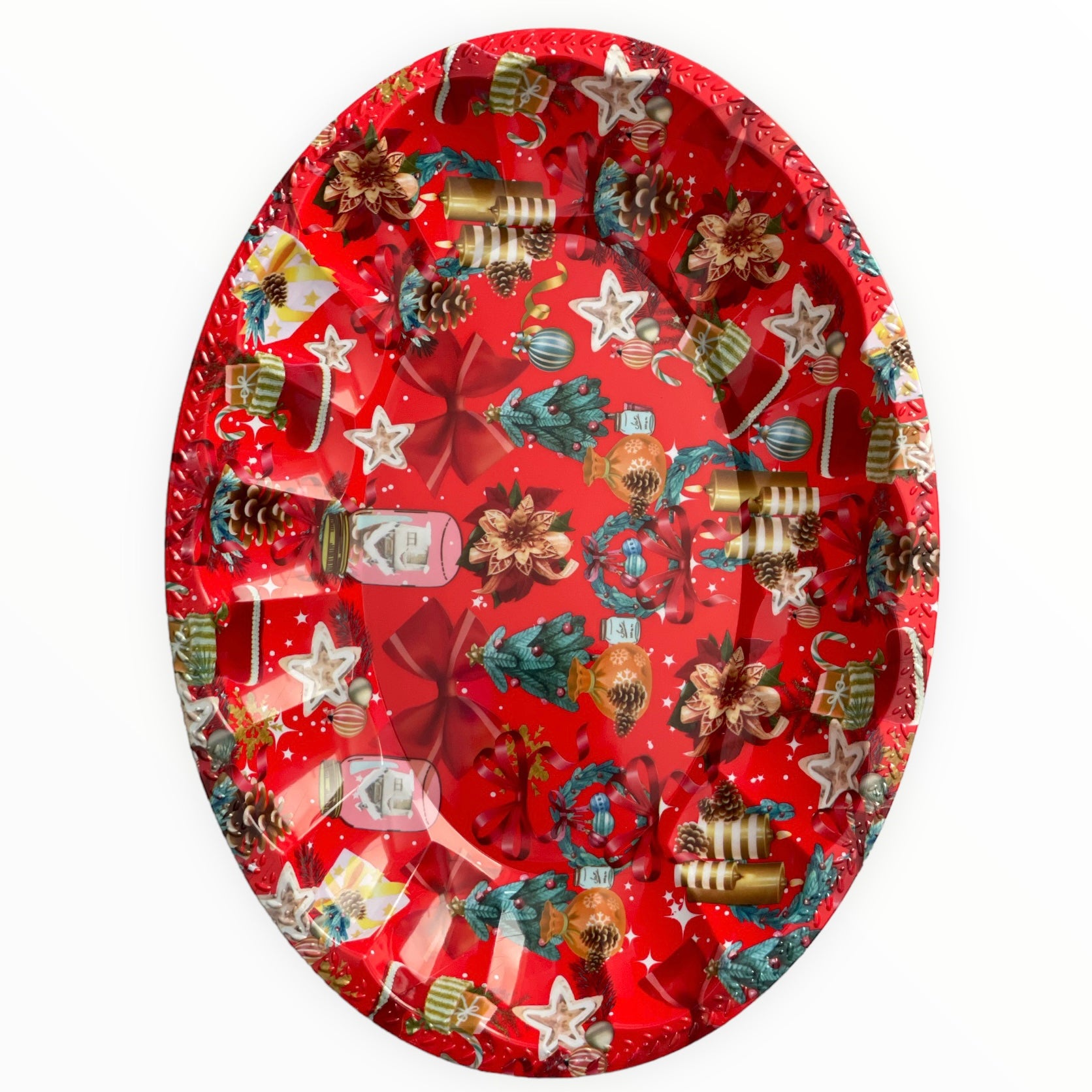 Tăvile cu decor de Crăciun, diferite modele ,frumos colorate,aduc un plus de culoare meselor festive sau pot fi dăruite alături de alte cadouri.