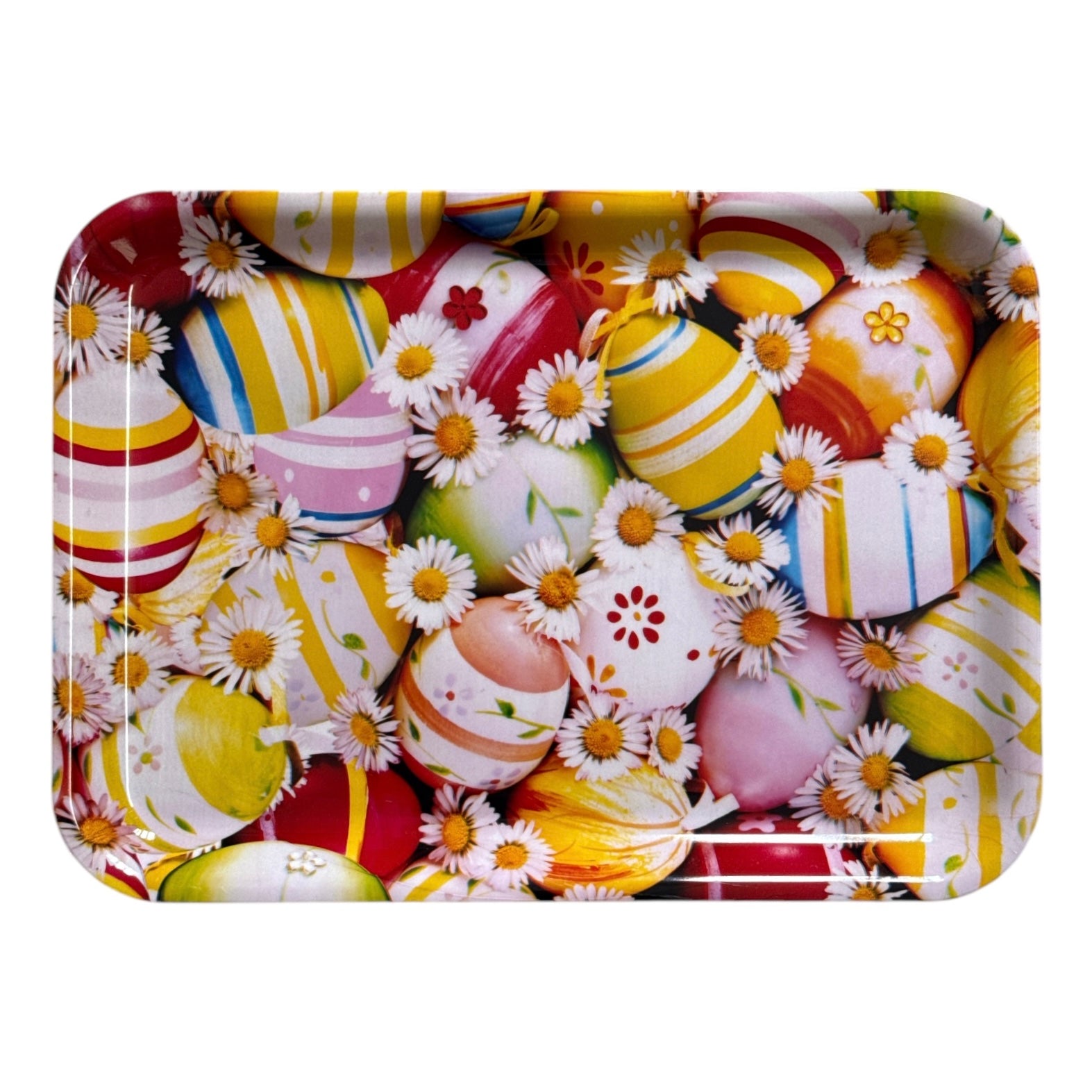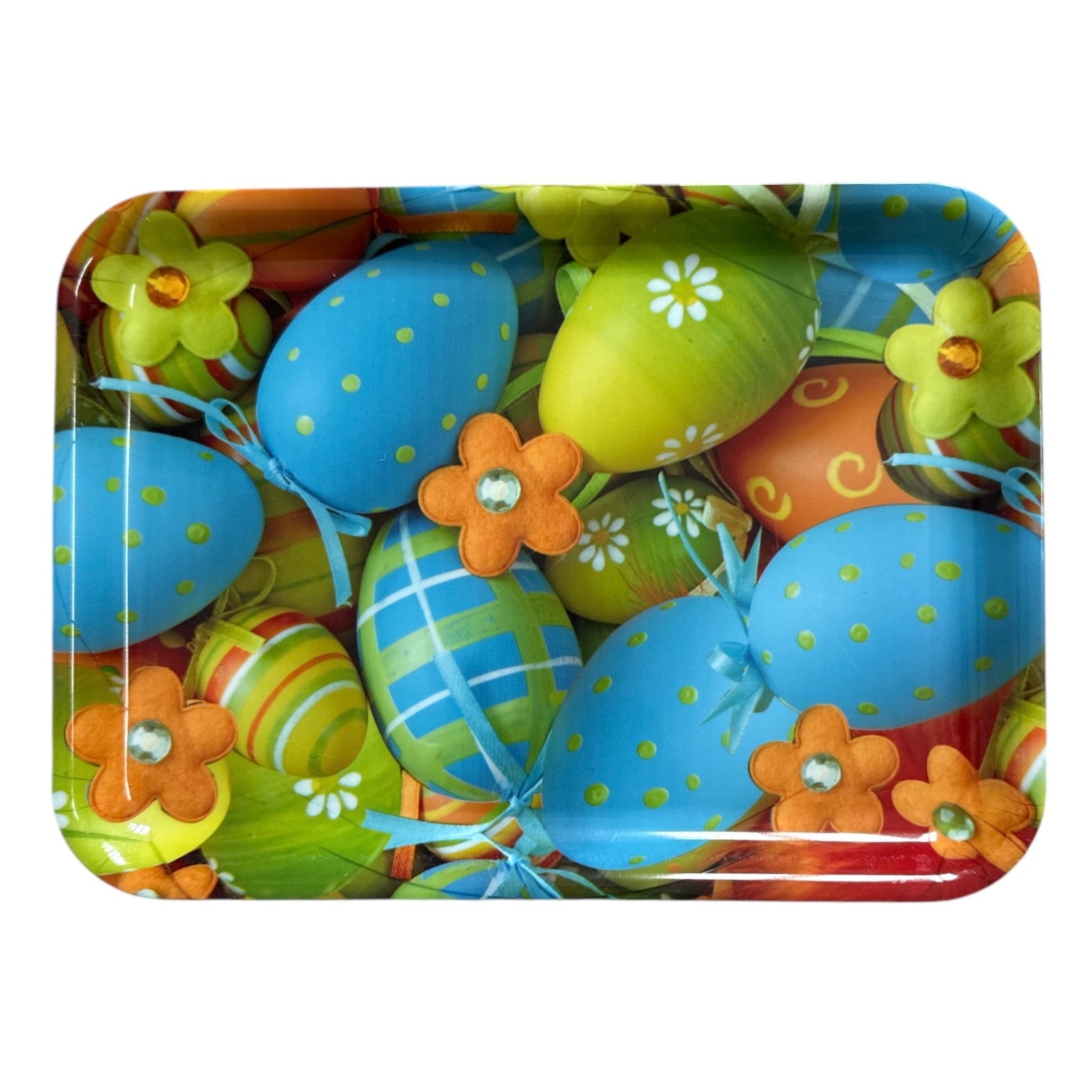 Tăvile cu decor de Paște ,frumos colorate ,aduc un plus de culoare meselor festive sau pot fi dăruite alături de alte cadouri.